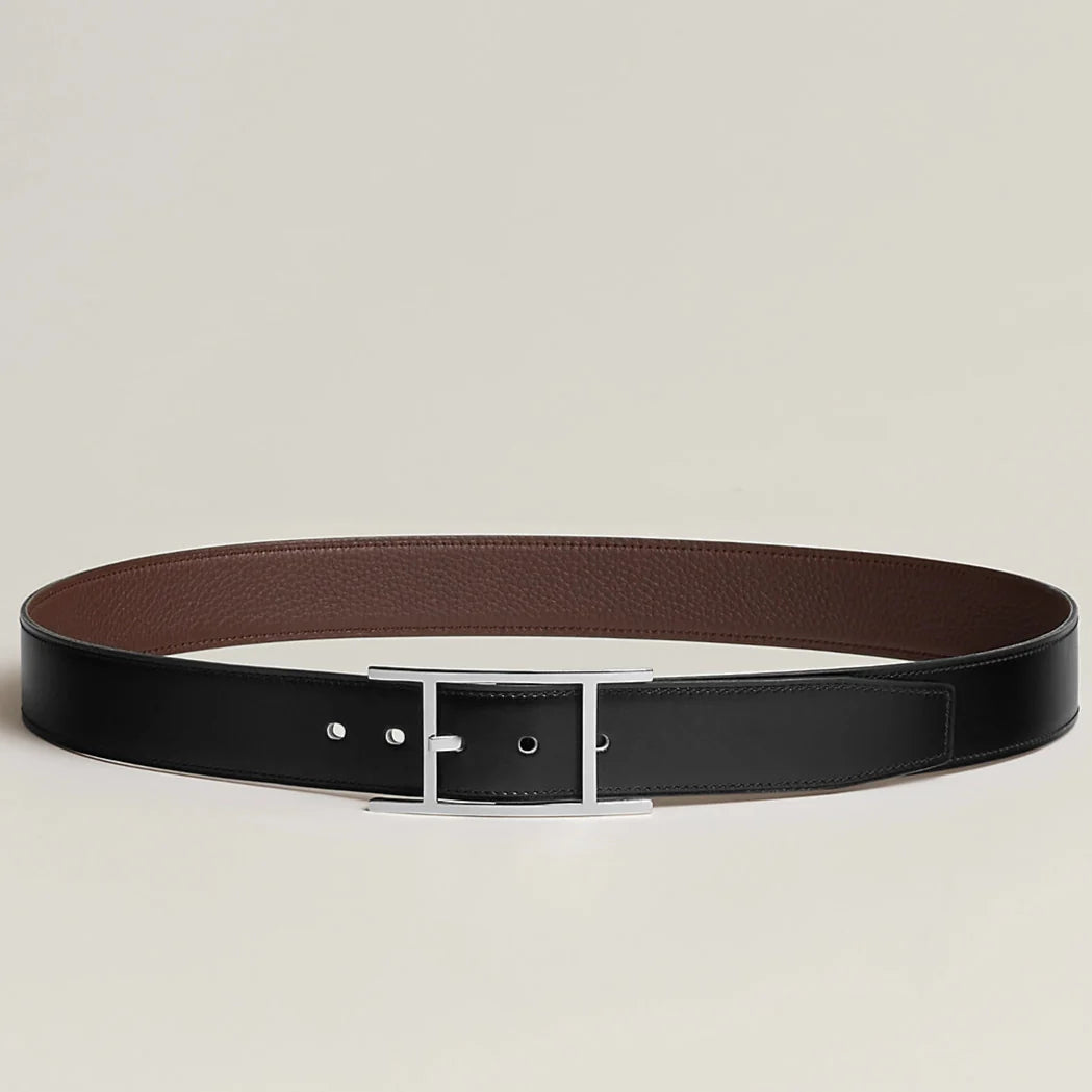 HM H d'Ancre Buckle Belt 32mm Black Chocolate Leather 187773