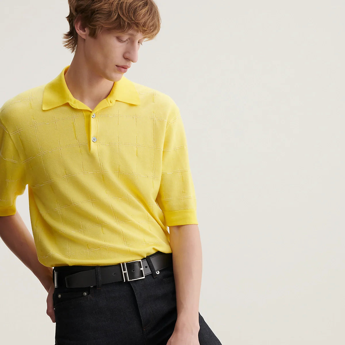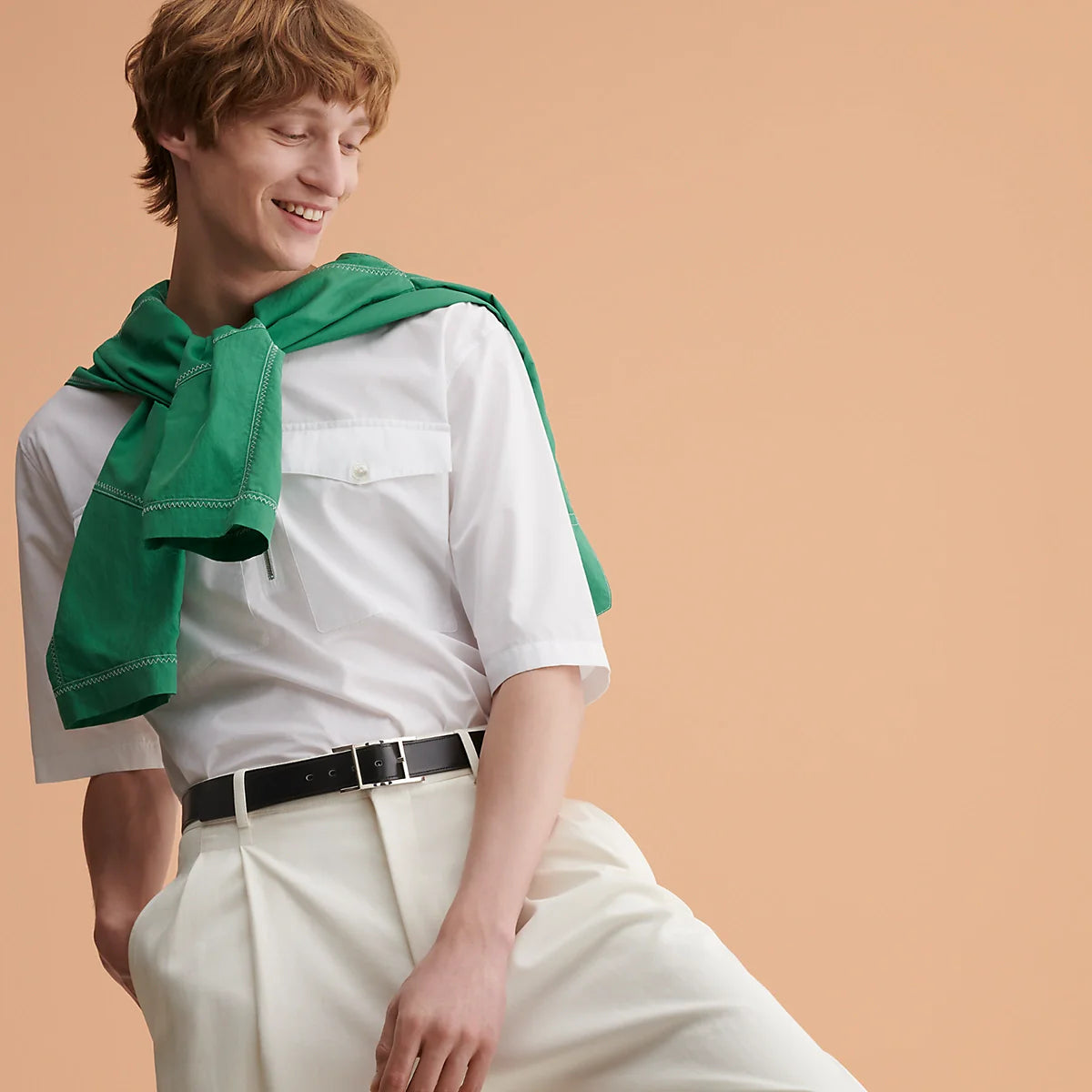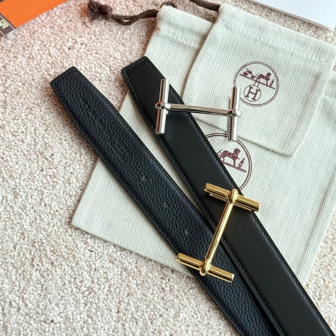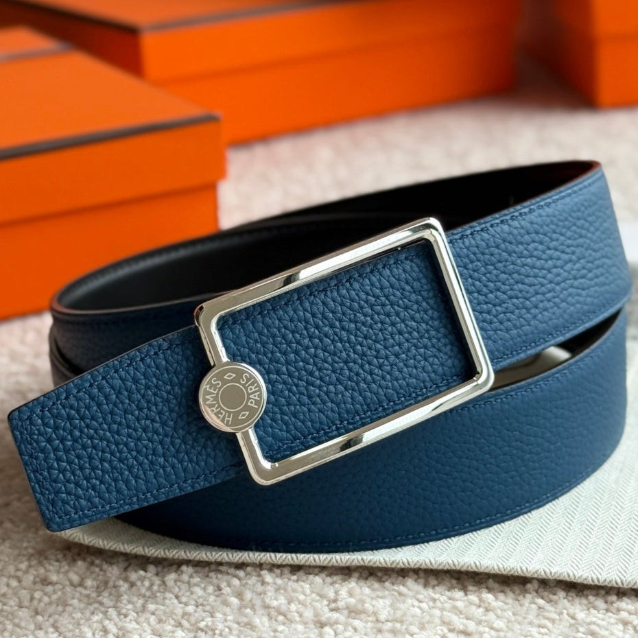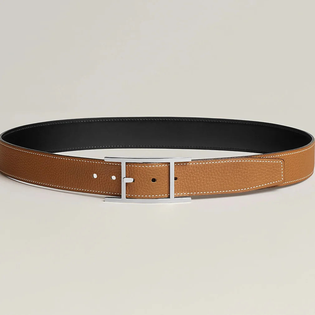 HM Silver Tube H Buckle Belt 38mm Meyer gray Leather 187782