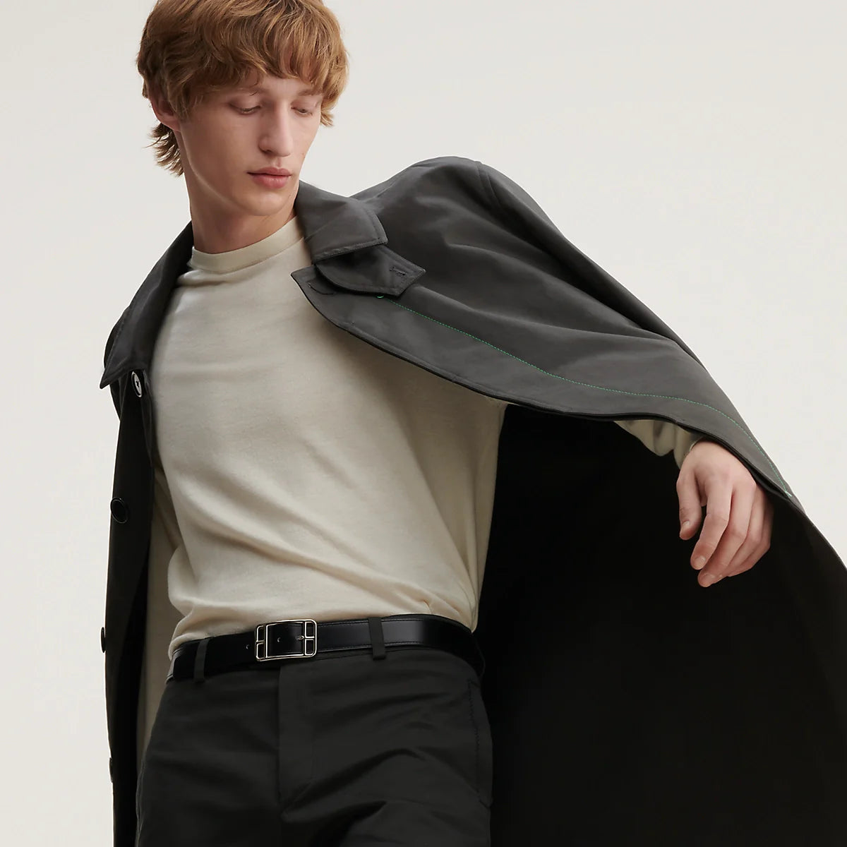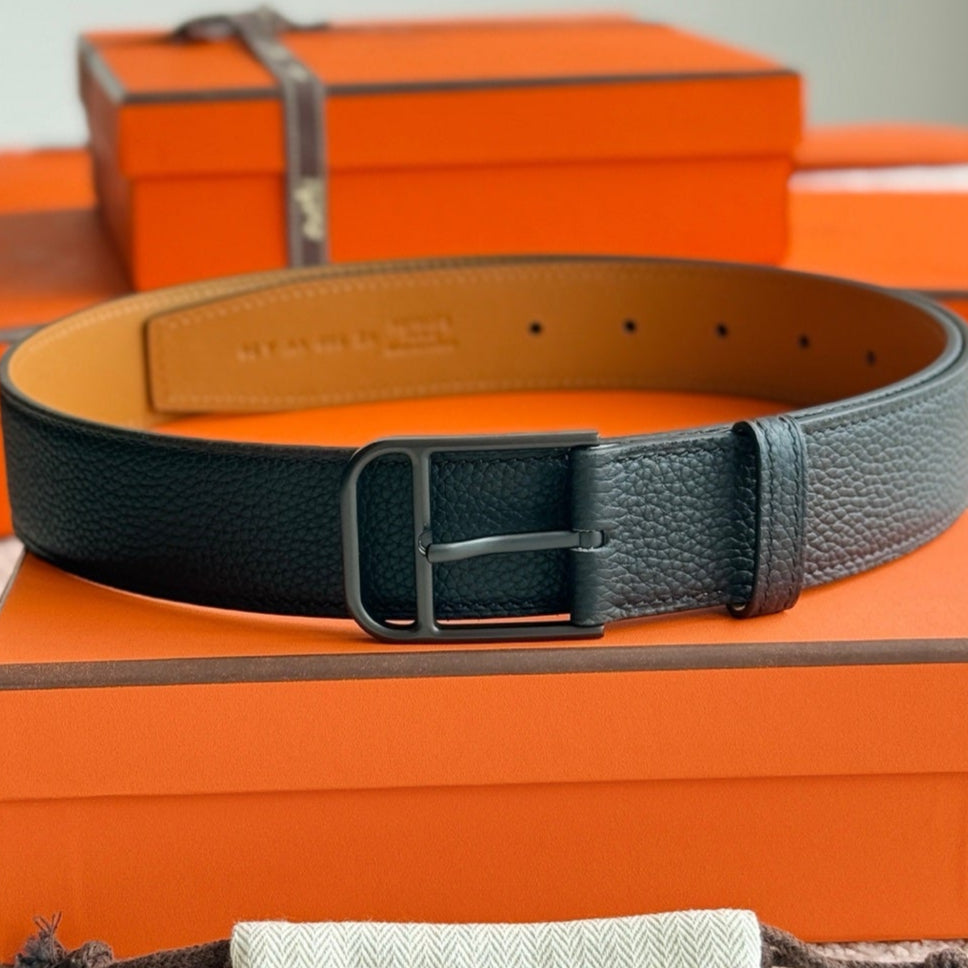 HM H au Carre Buckle Belt 32mm Black Leather 187768
