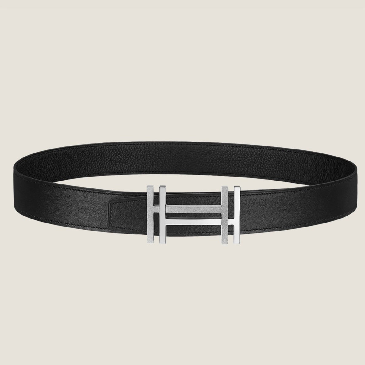 HM Silver H Buckle & Reversible 32mm Belt Black Ebony leather 124644