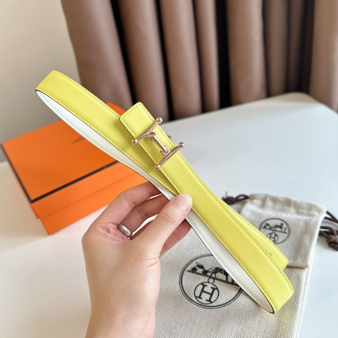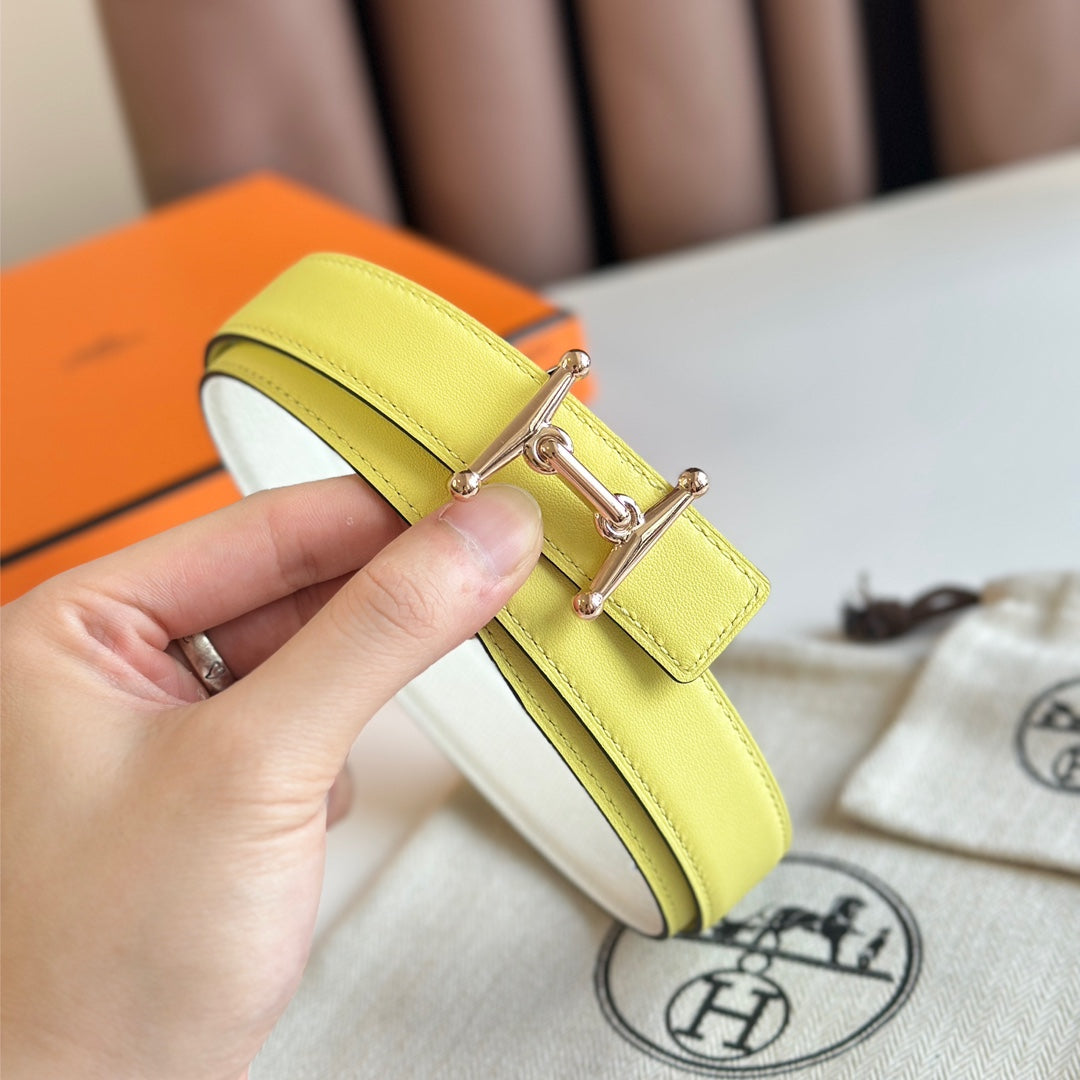 HM Gold Mors H buckle & Reversible 24 mm belt Yellow Beige leather 125368