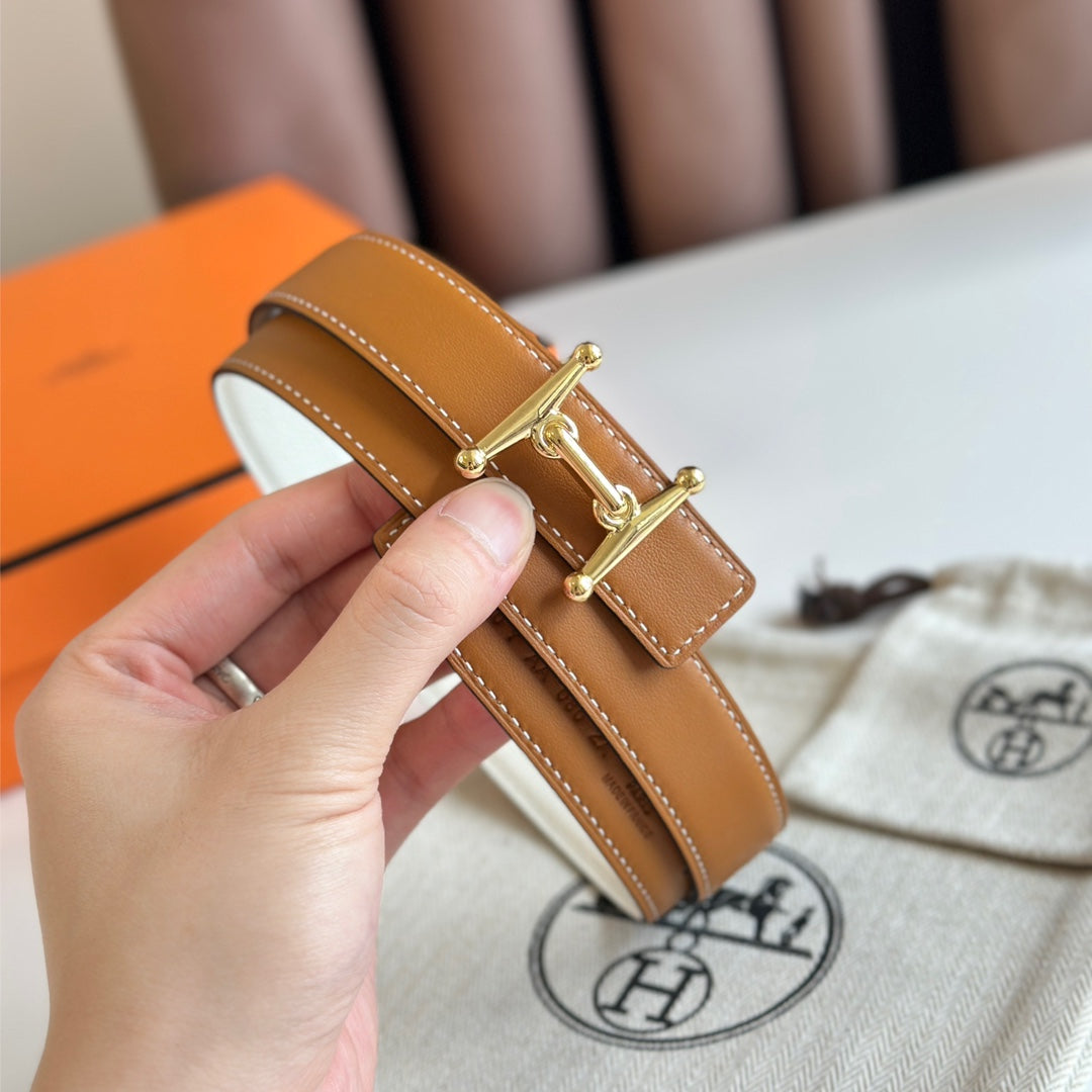 HM Pink Gold Mors H buckle & Reversible 24 mm belt Brown White leather 125363