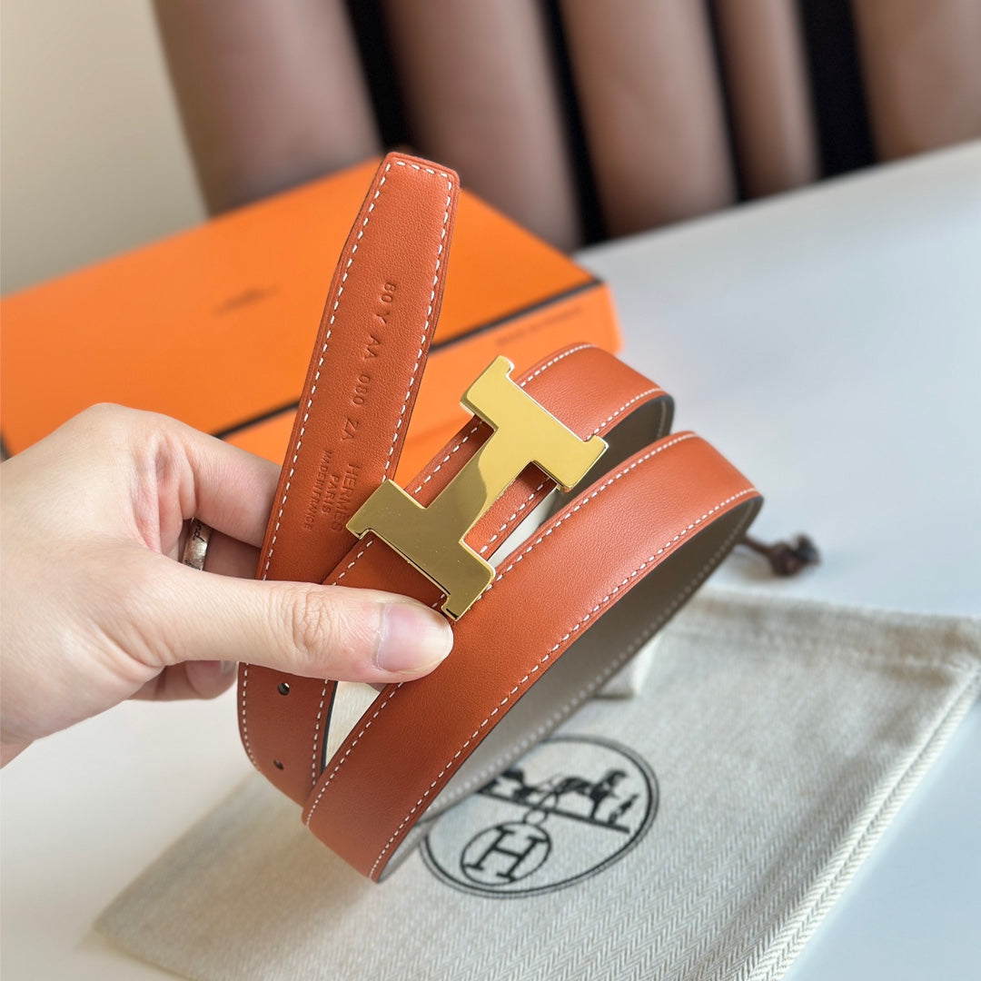 HM Gold Mors H buckle & Reversible 24 mm belt Orange Beige Leather 125355
