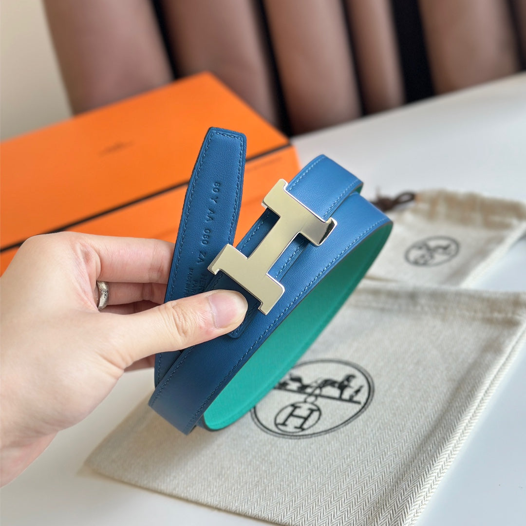 HM Gold Mors H buckle & Reversible 24 mm belt Blue Green leather 125357
