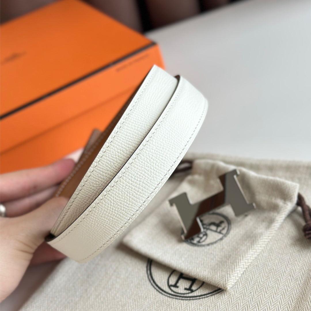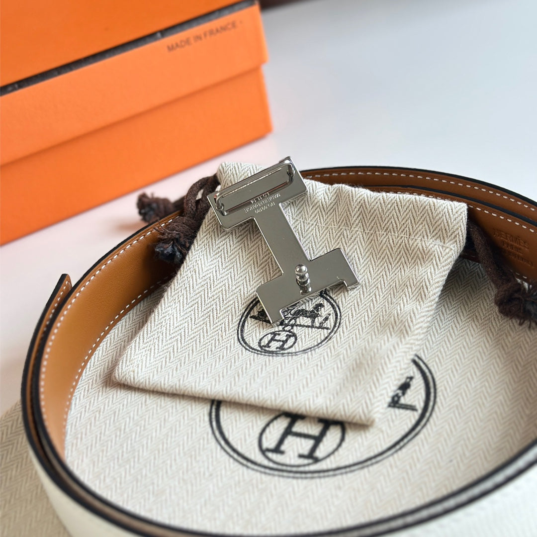 HM Silver H Buckle & Reversible 32mm Belt Beige mix Black leather 124653