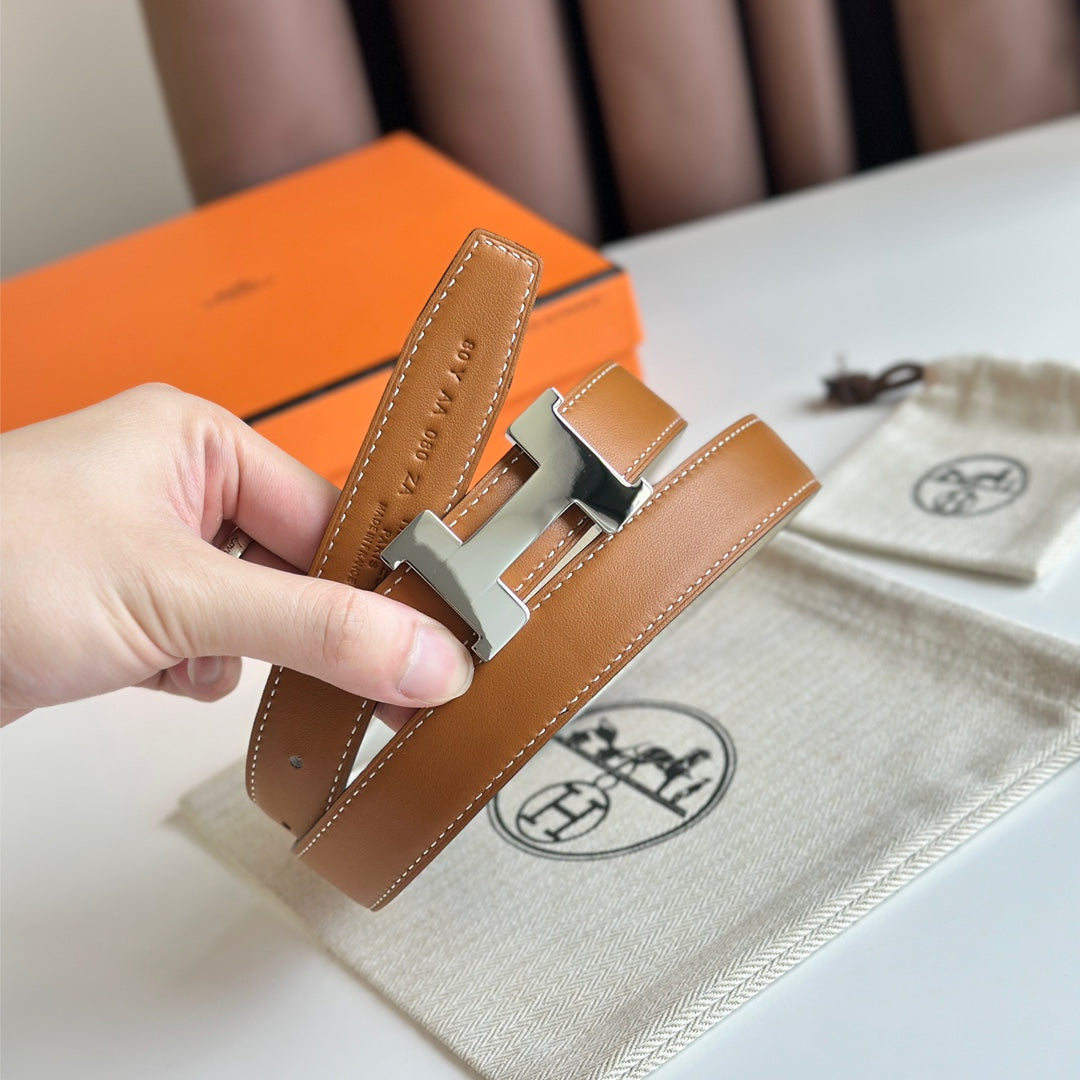 HM Silver Constance & Reverible Belt Brown Etoupe Leather 125372