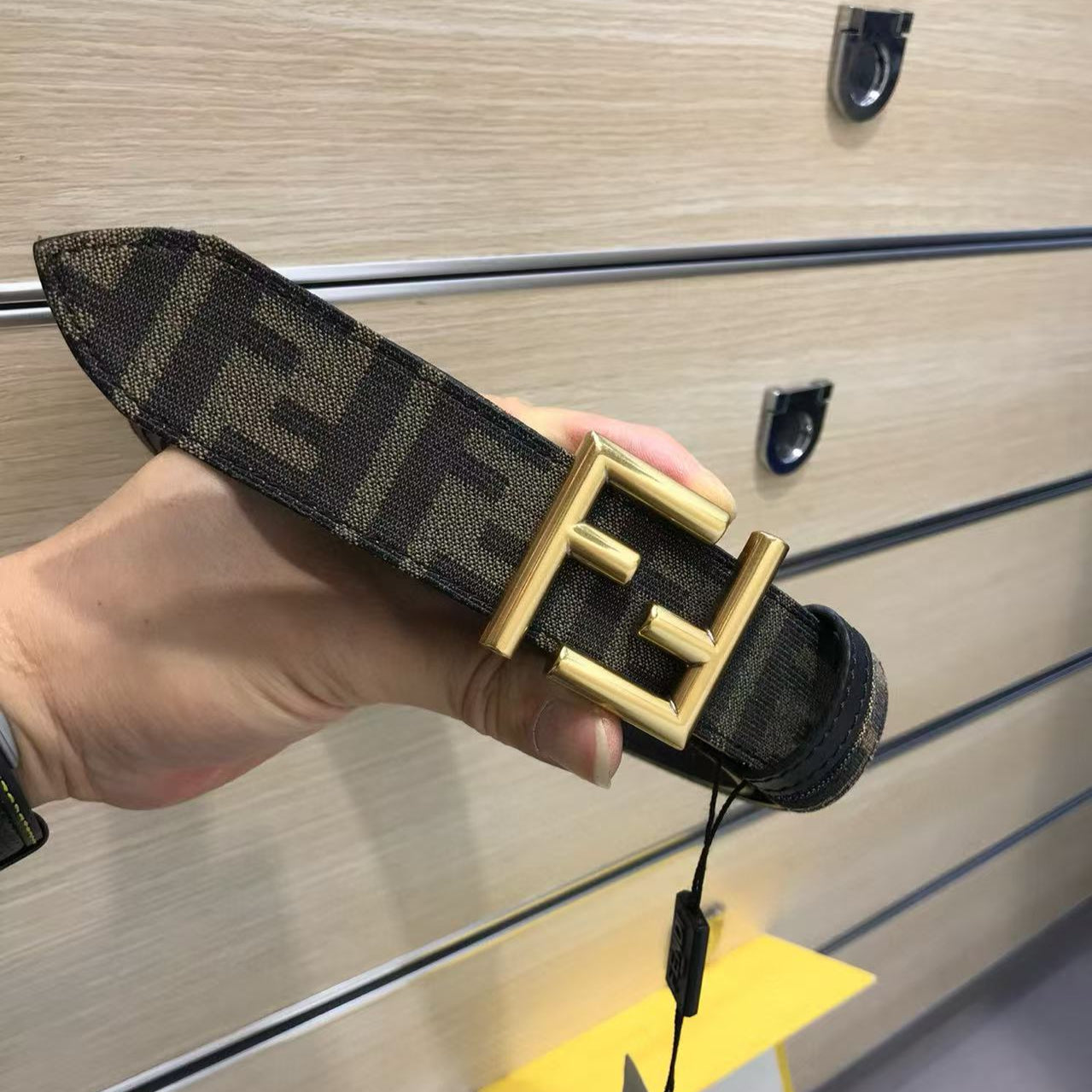 FF Belt 2mm Monogram Canvas Beige Calfskin Gold Hardware