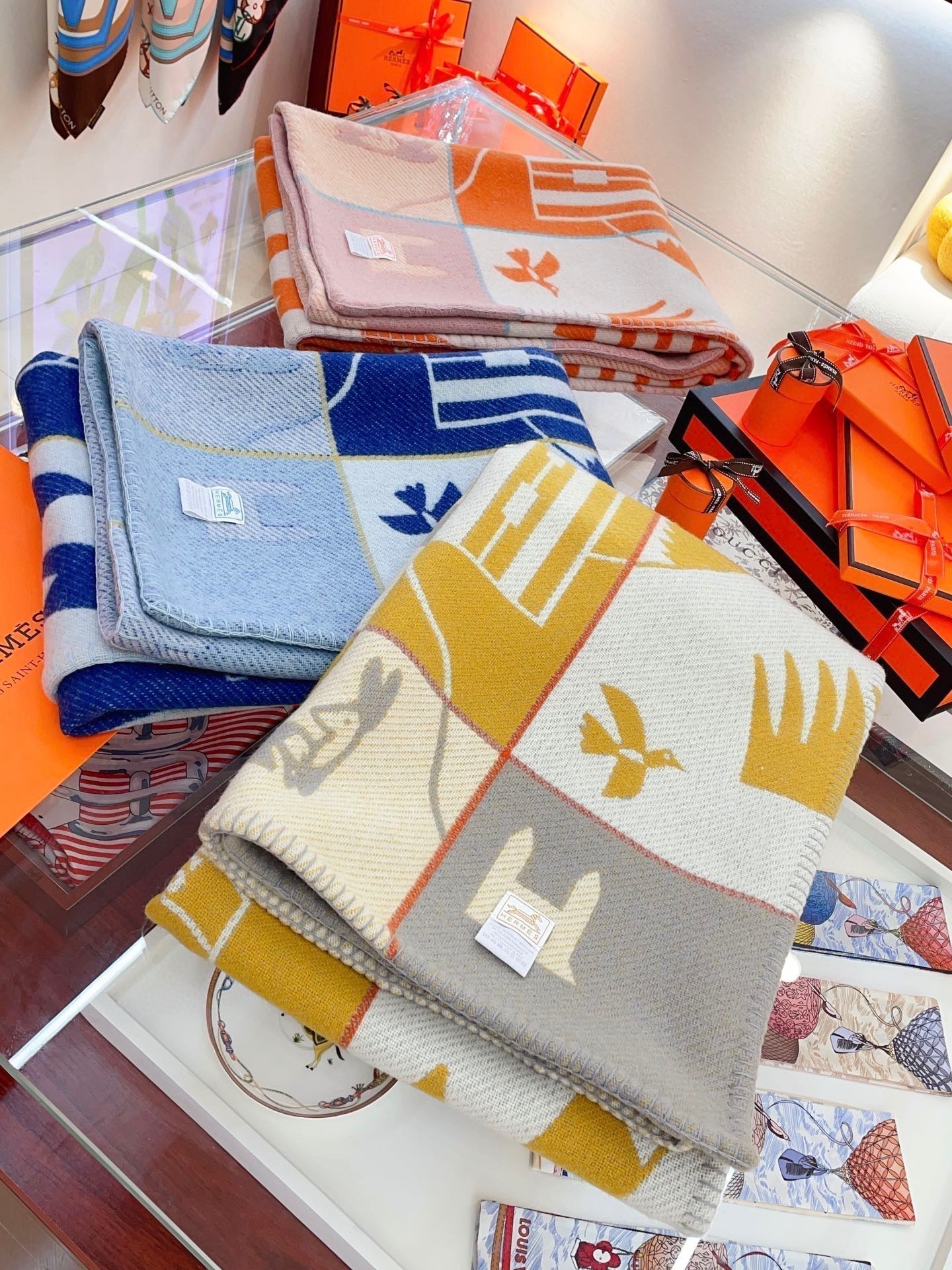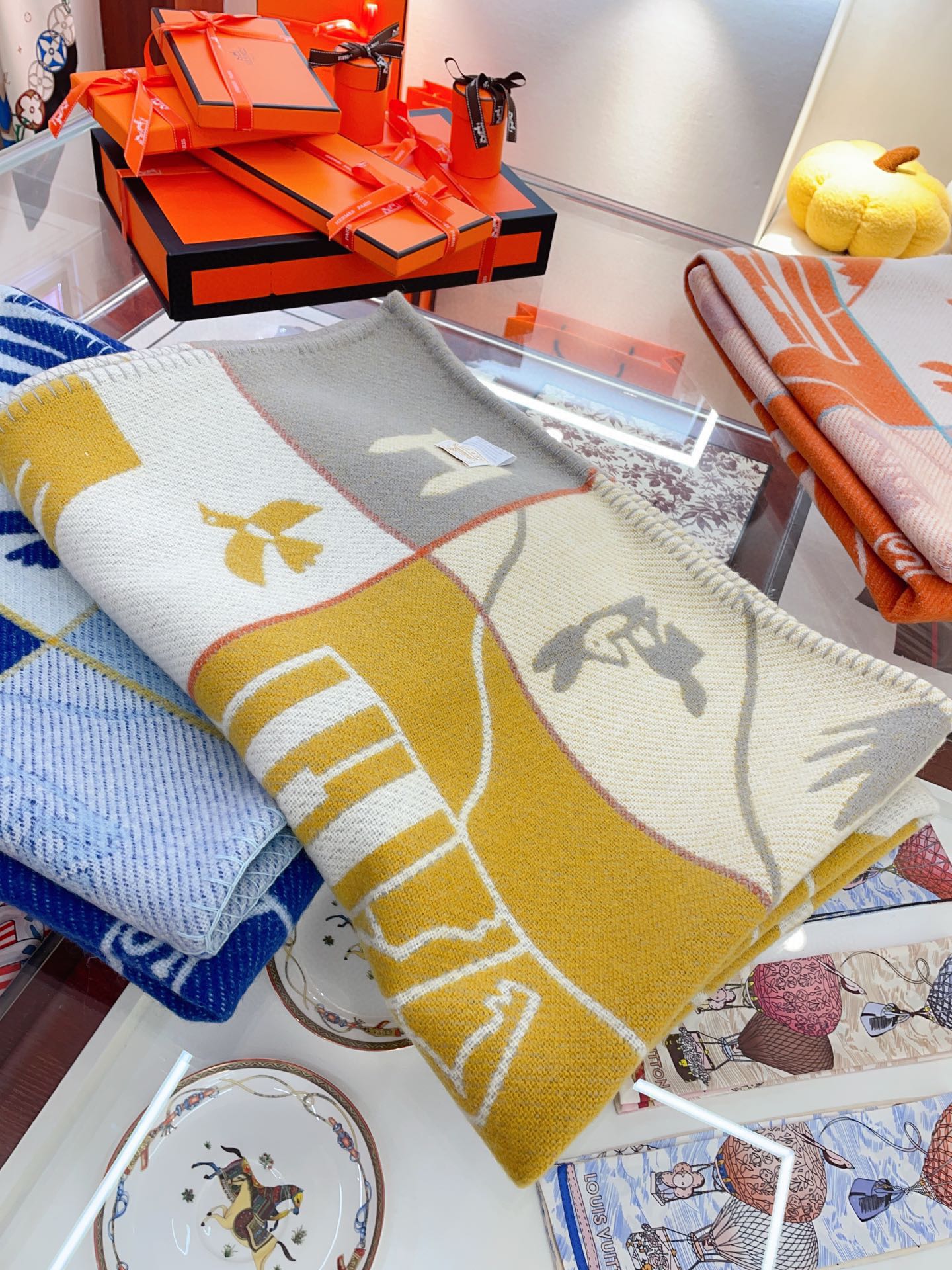 Baby Blankets 140 CM In Yellow Mix Grey Cashmere And Fine Wool 341417