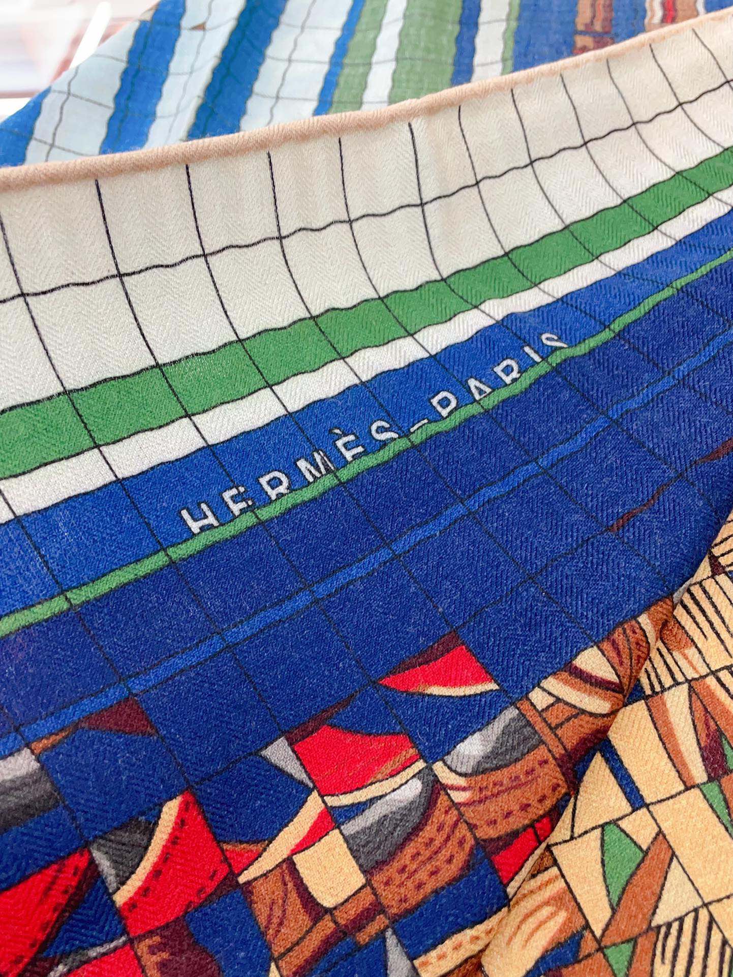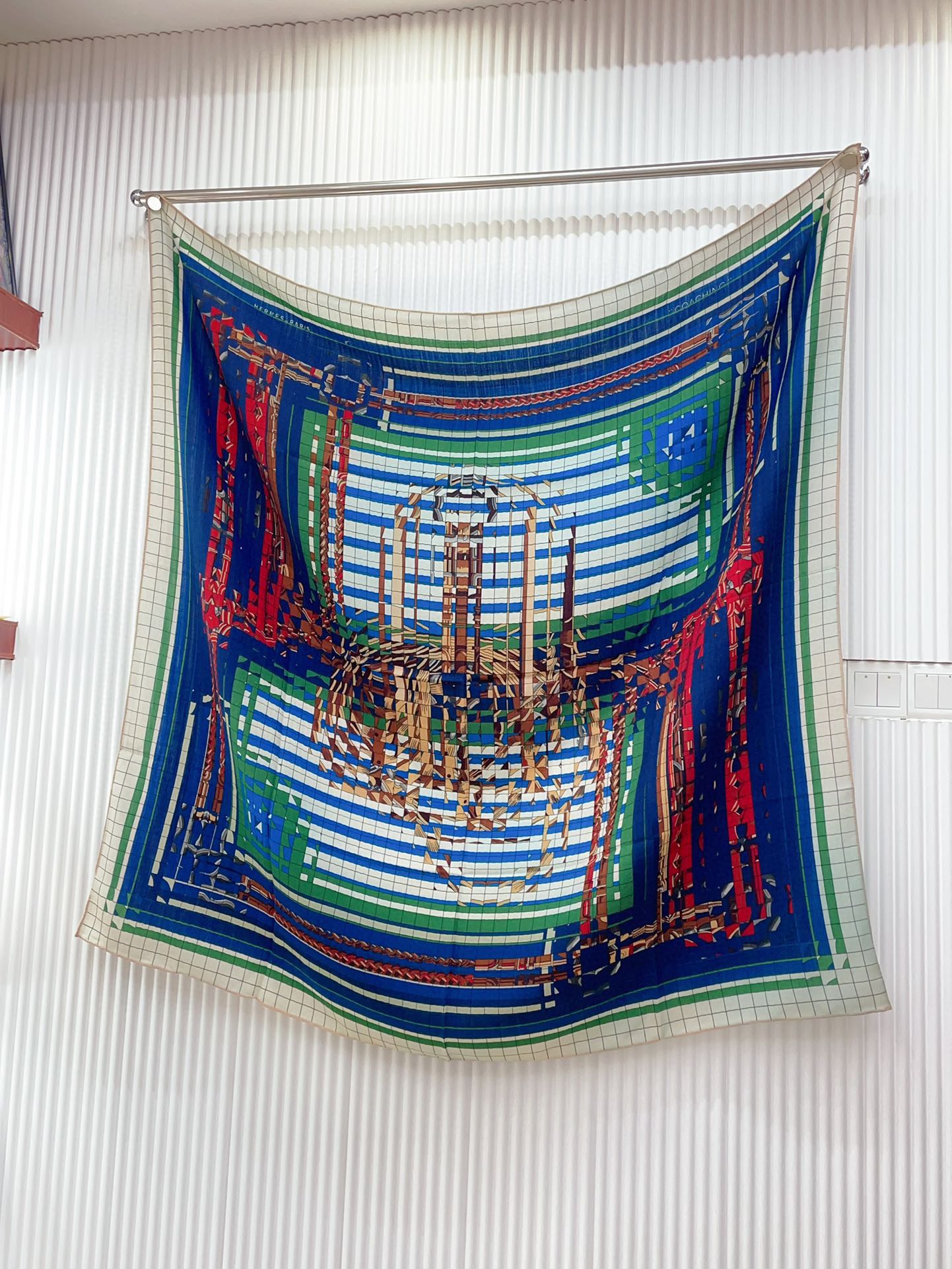 Coaching Deja-Vu Shawl 140 CM Dark Blue Colorful Cashmere And Silk 398262