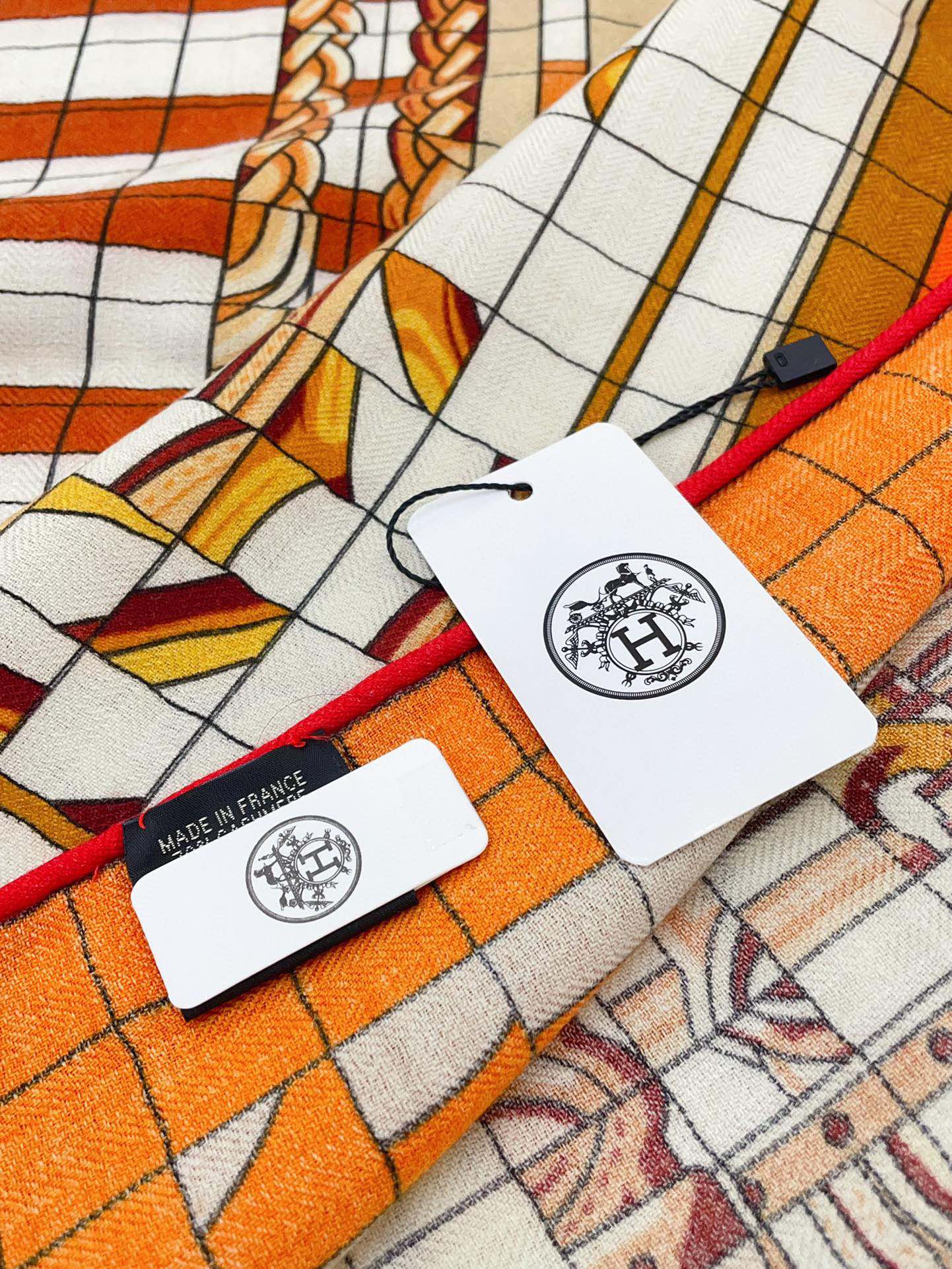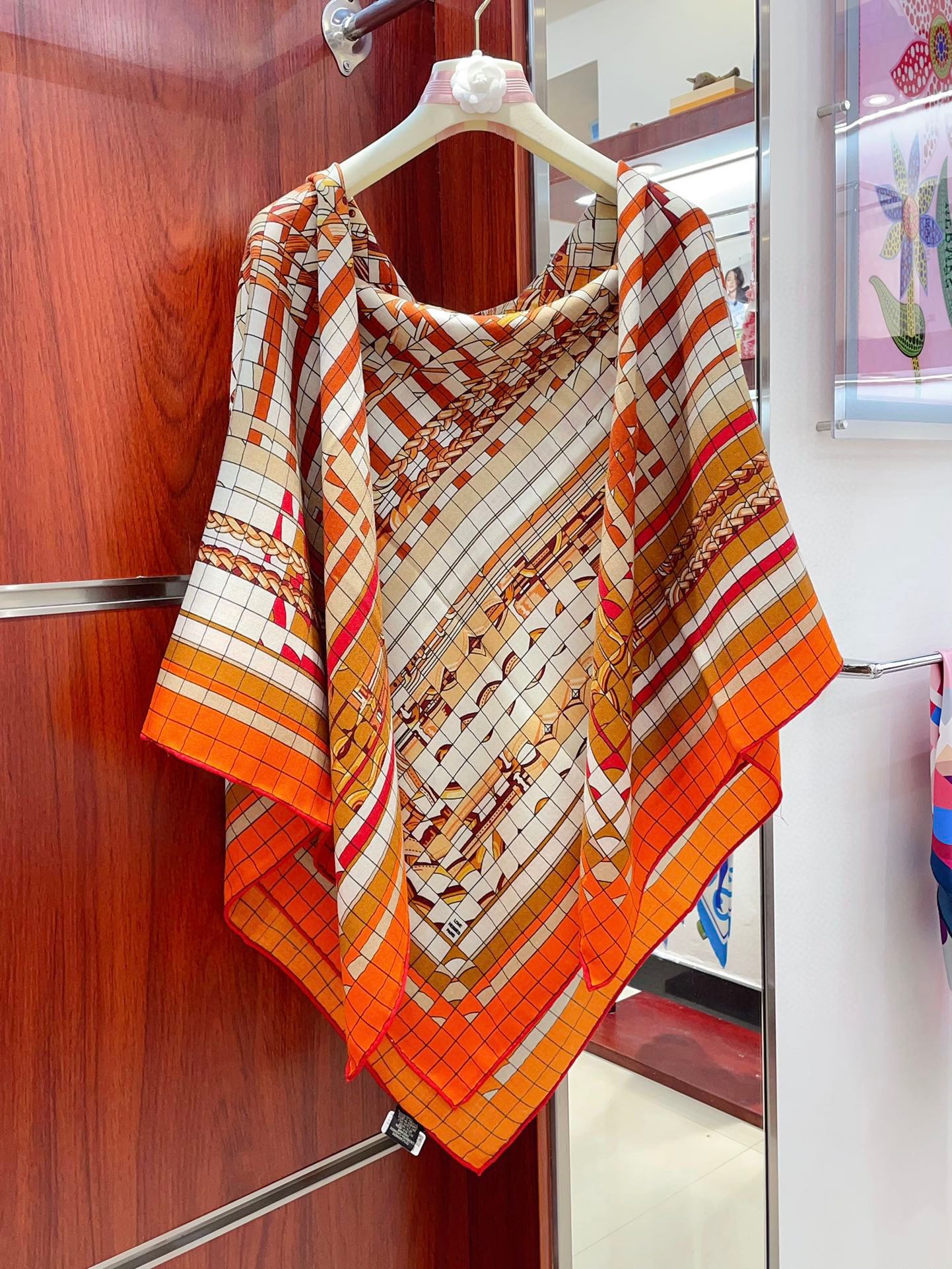 Coaching Deja-Vu Shawl 140 CM Orange Colorful Cashmere And Silk 398263