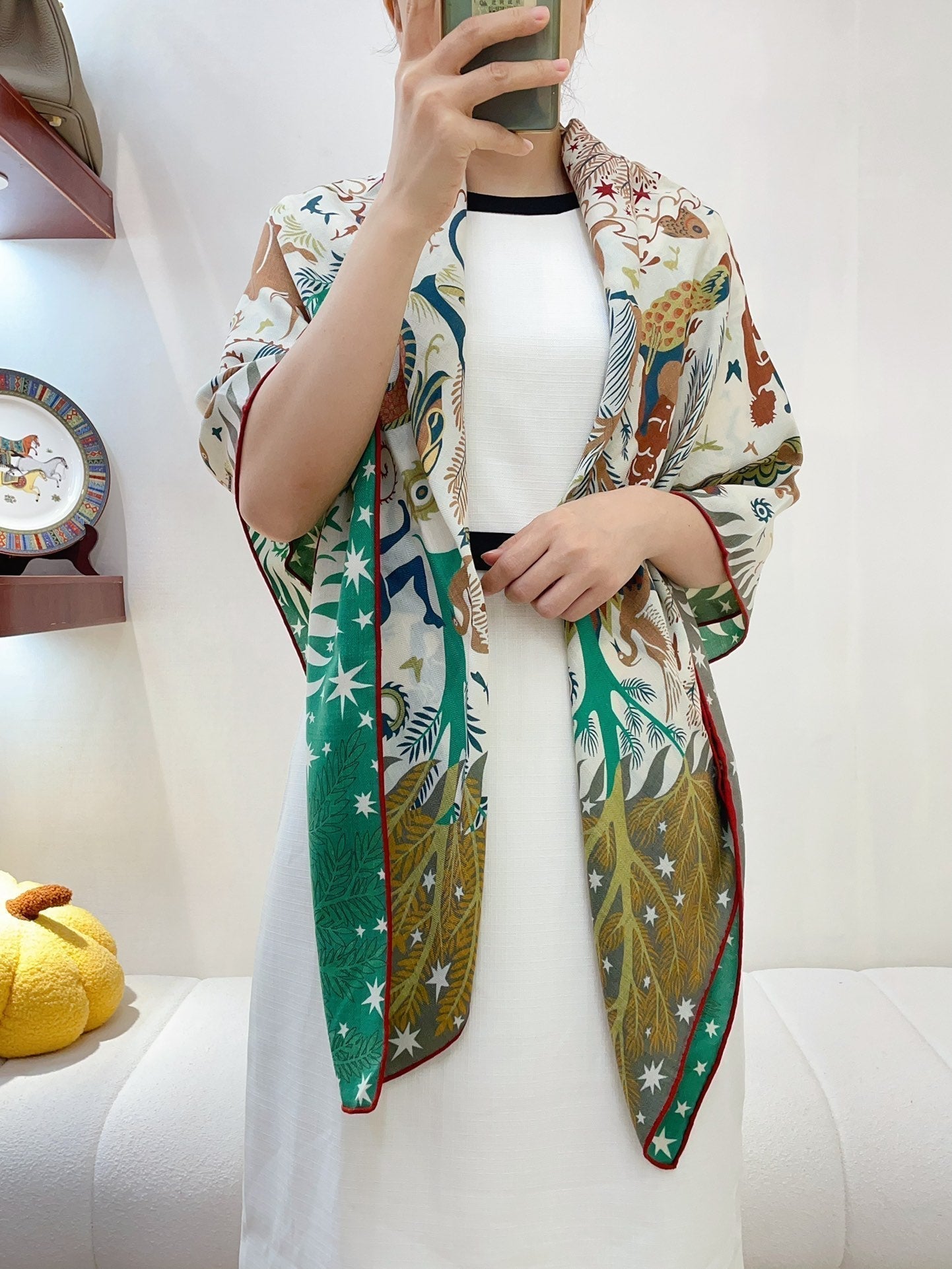Sous Le Charme d'Orphee Double Face Scarf 140 CM In Colorful Cashmere And Silk 233127