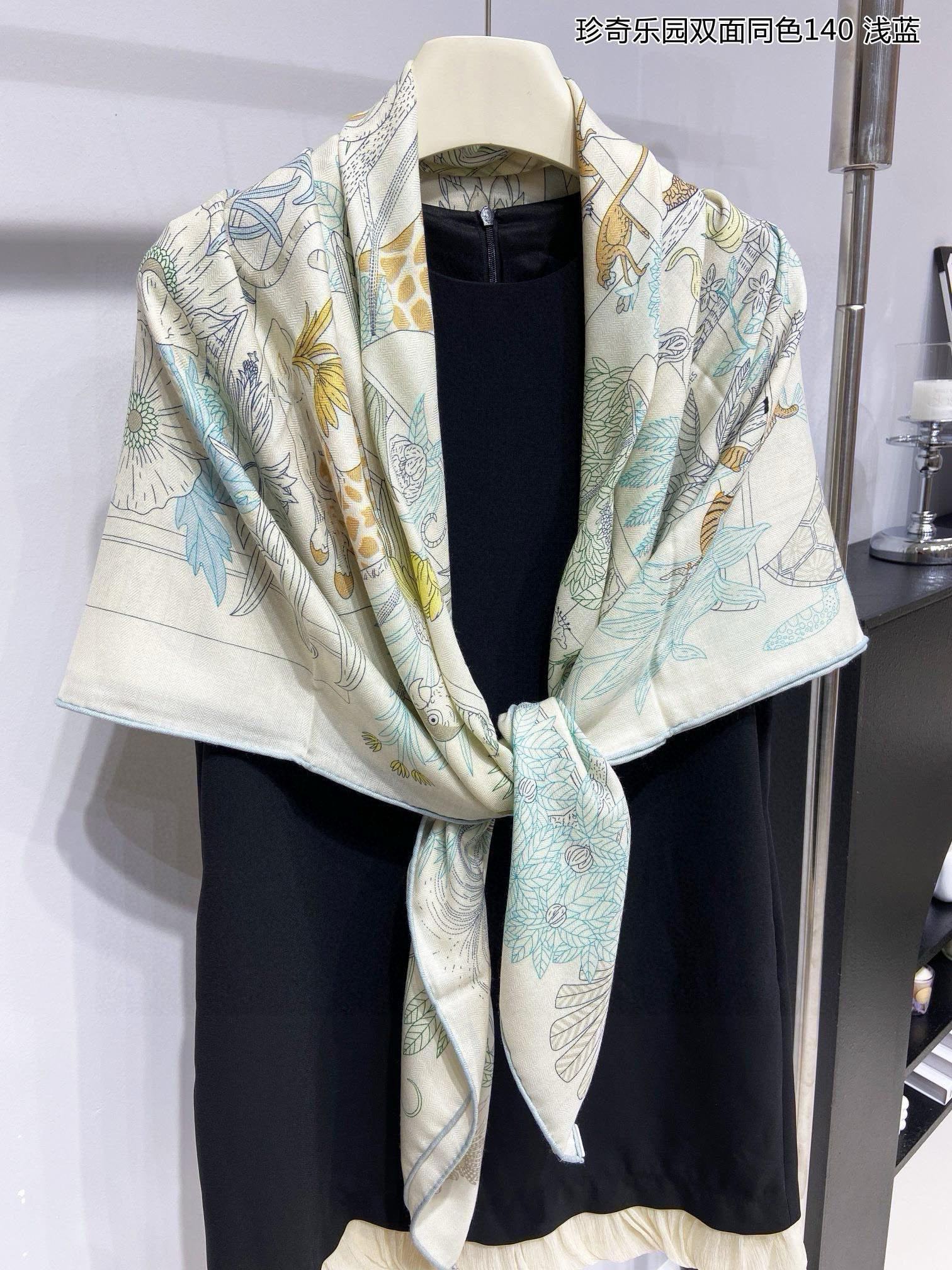 Square Scarf 140 CM White Colorful Cashmere And Silk