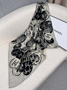SQUARE SCARF 70 CM IN BLACK MIX WHITE CASHMERE AND SILK 399803