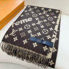 SUPREME X MONOGRAM 180 CM SCARF IN UMBER BROWN WOOL AND CASHMERE 392941