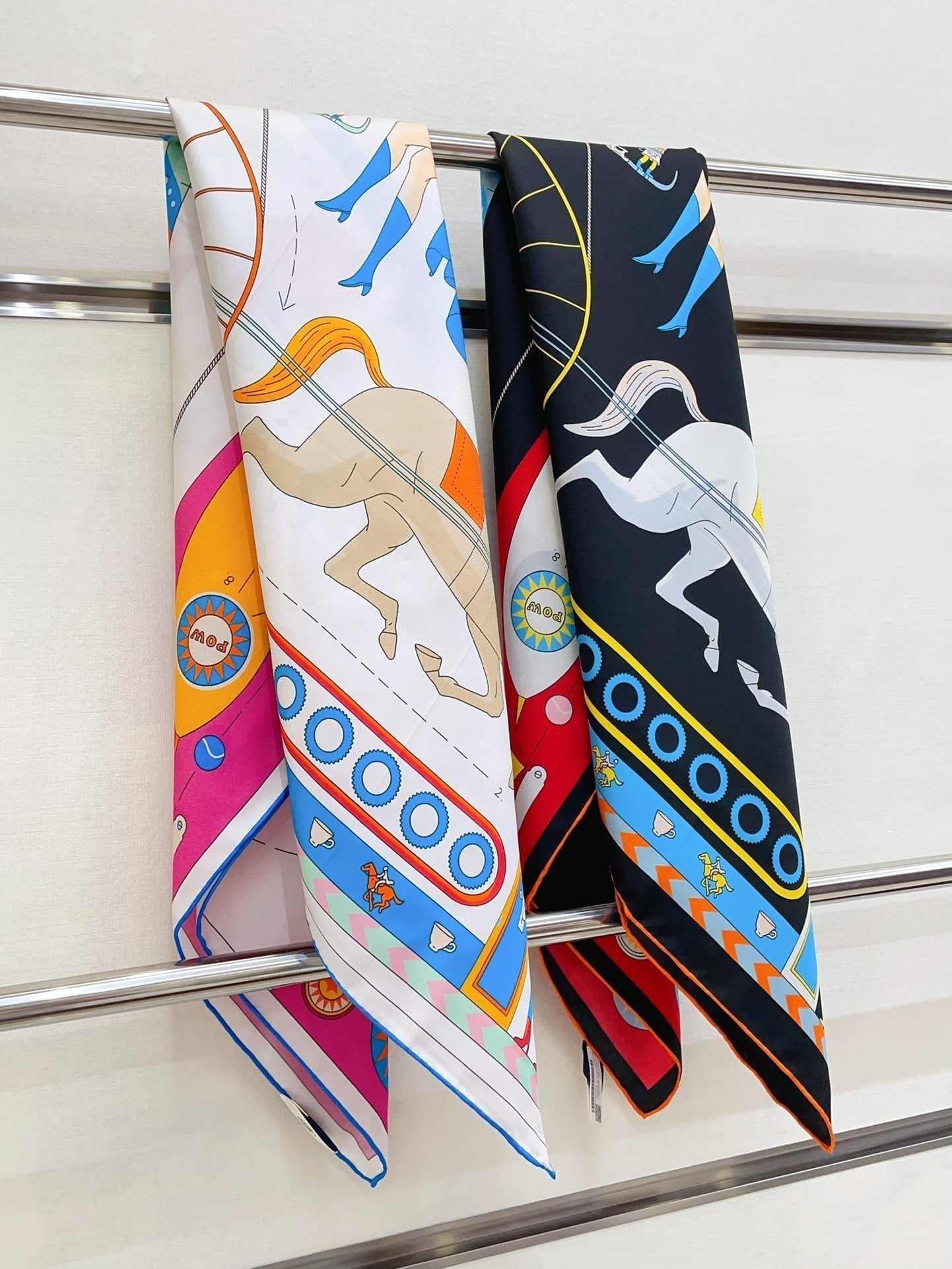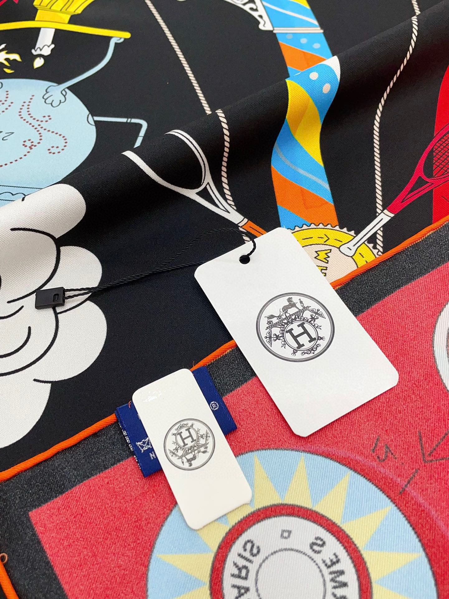 Tea For Two Scarf 90 CM In Black Colorful Silk Twill 296692