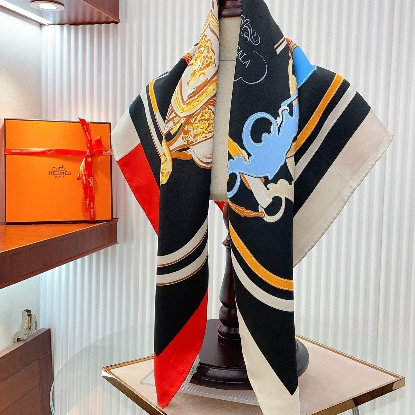 Carré Harnais De Cœur Scarf 90 CM In Orange Colorful Silk 306470