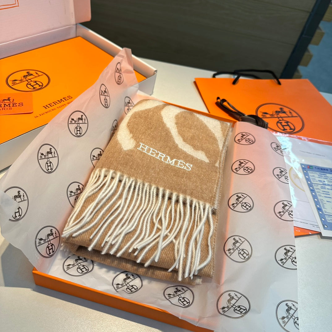 Casaque Entrelacs Equestres Scarf 195 CM Orange Mix Light Brown Cashmere