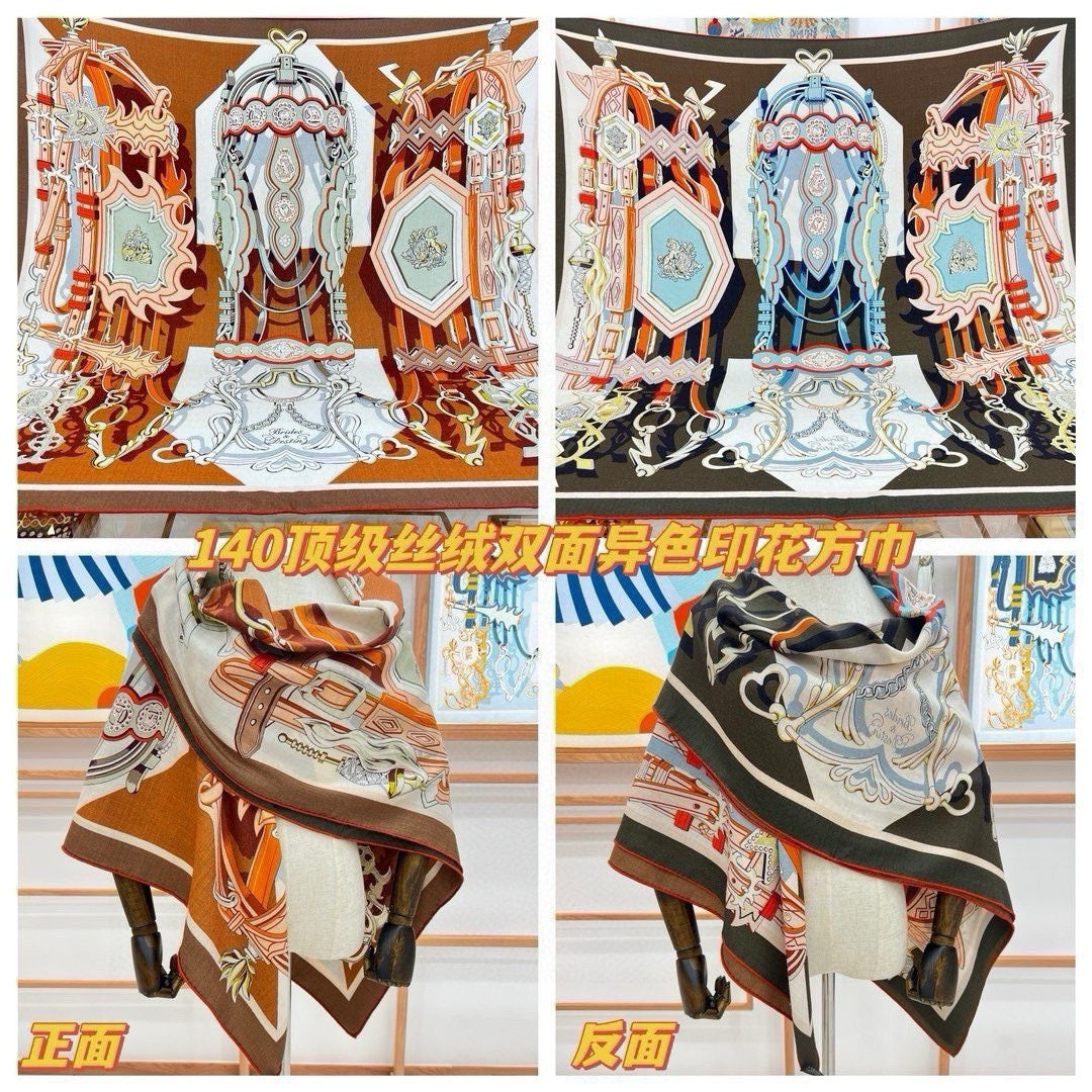 Carré Harnais De Cœur Scarf 140 CM In Orange Colorful Cashmere And Silk 335856