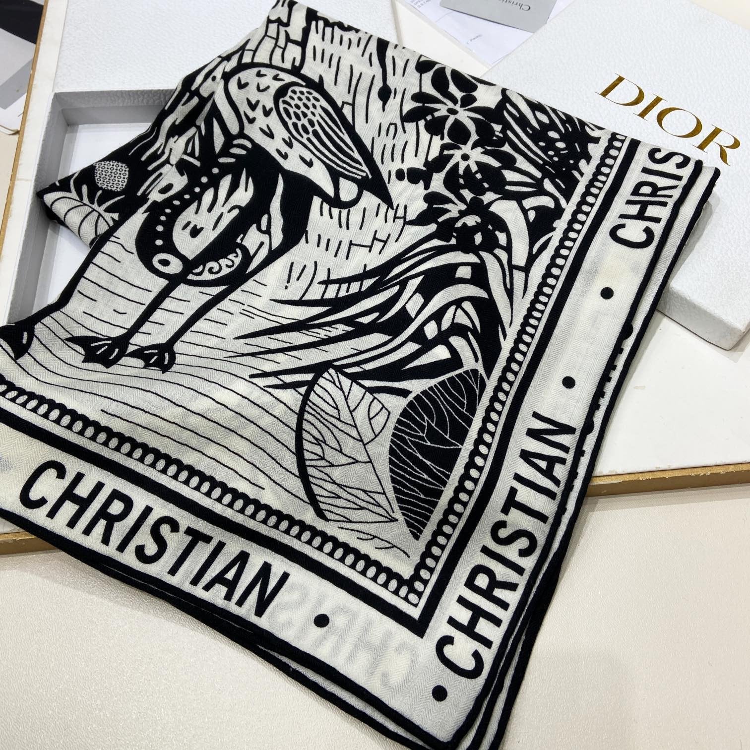 SQUARE SCARF 140 CM IN BLACK MIX WHITE MONOGRAM WOOL AND SILK 415109
