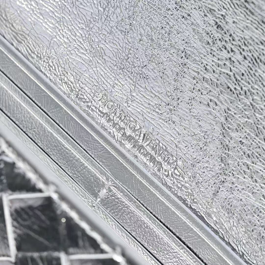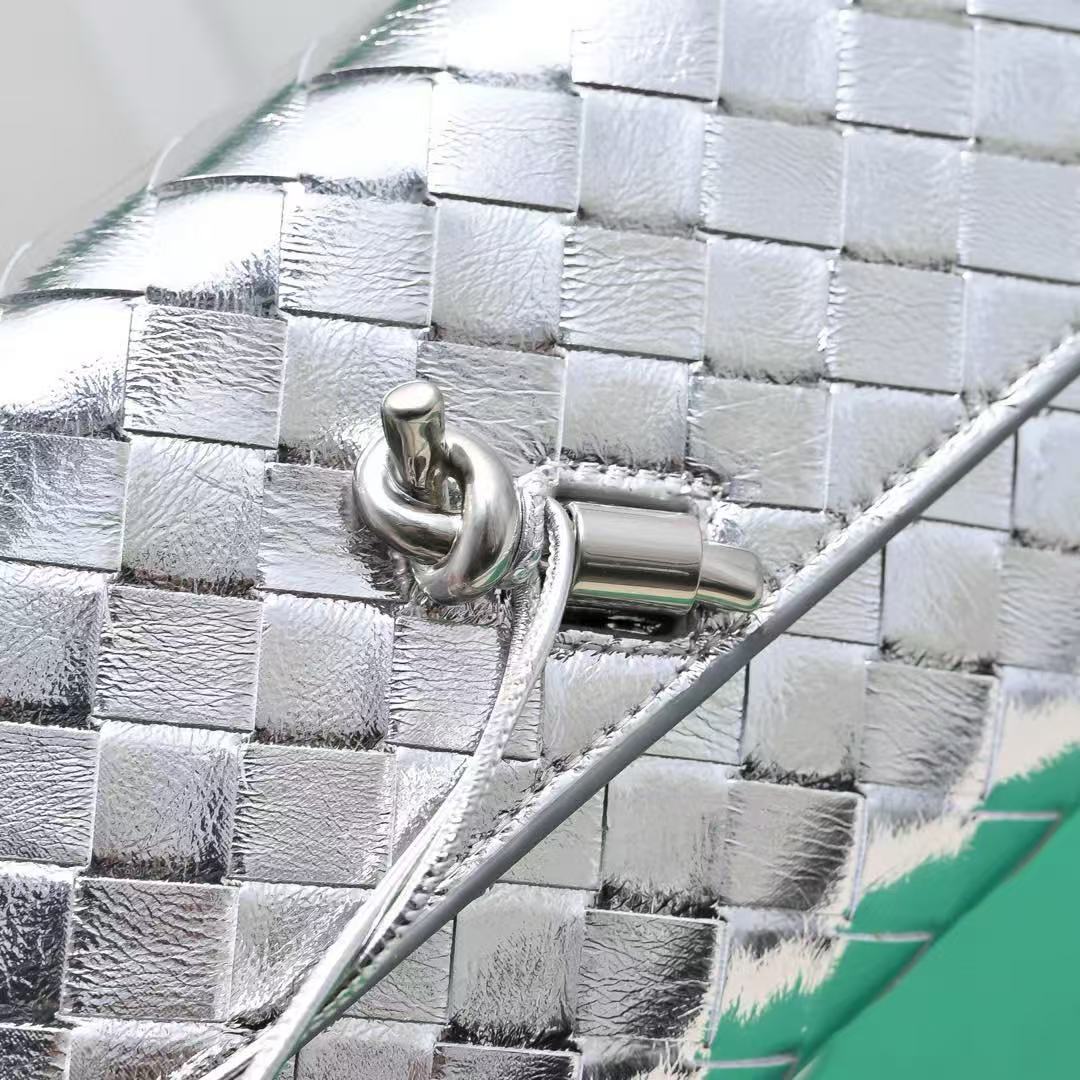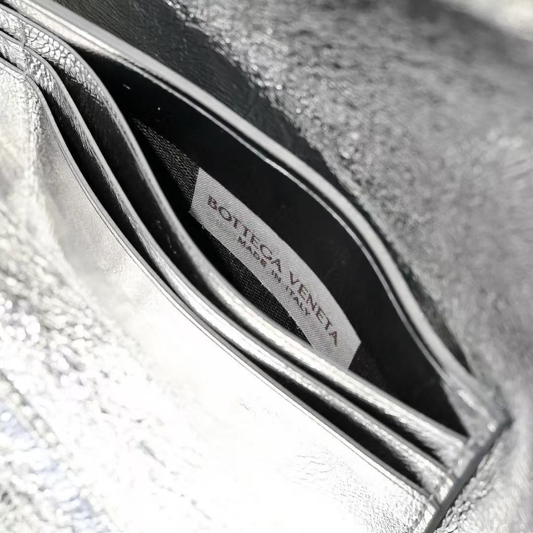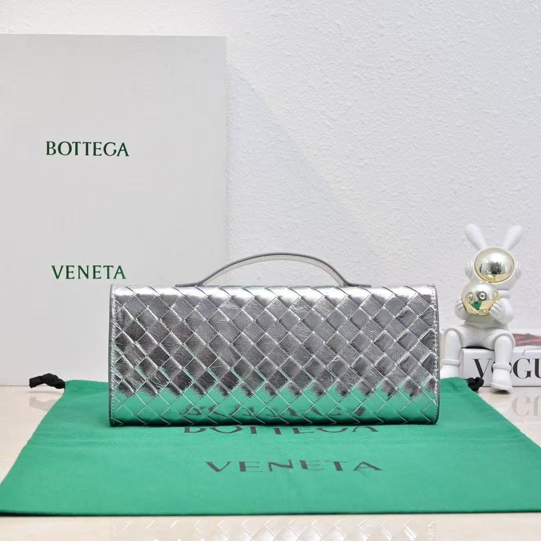 BV Long Clutch Andiamo With Handle 31cm Sliver Metalic Calfskin