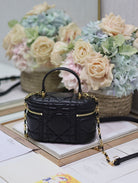 CARO 16 MINI VANITY CASE IN BLACK MACROCANNAGE LAMBSKIN