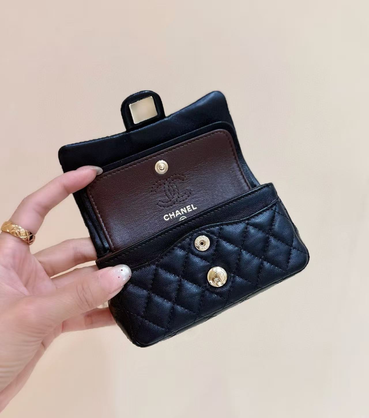 CC 25A Mini Coco Mark Heart x Pearl Charm Bag 12.5cm Black Lambskin