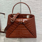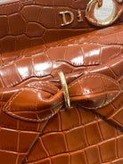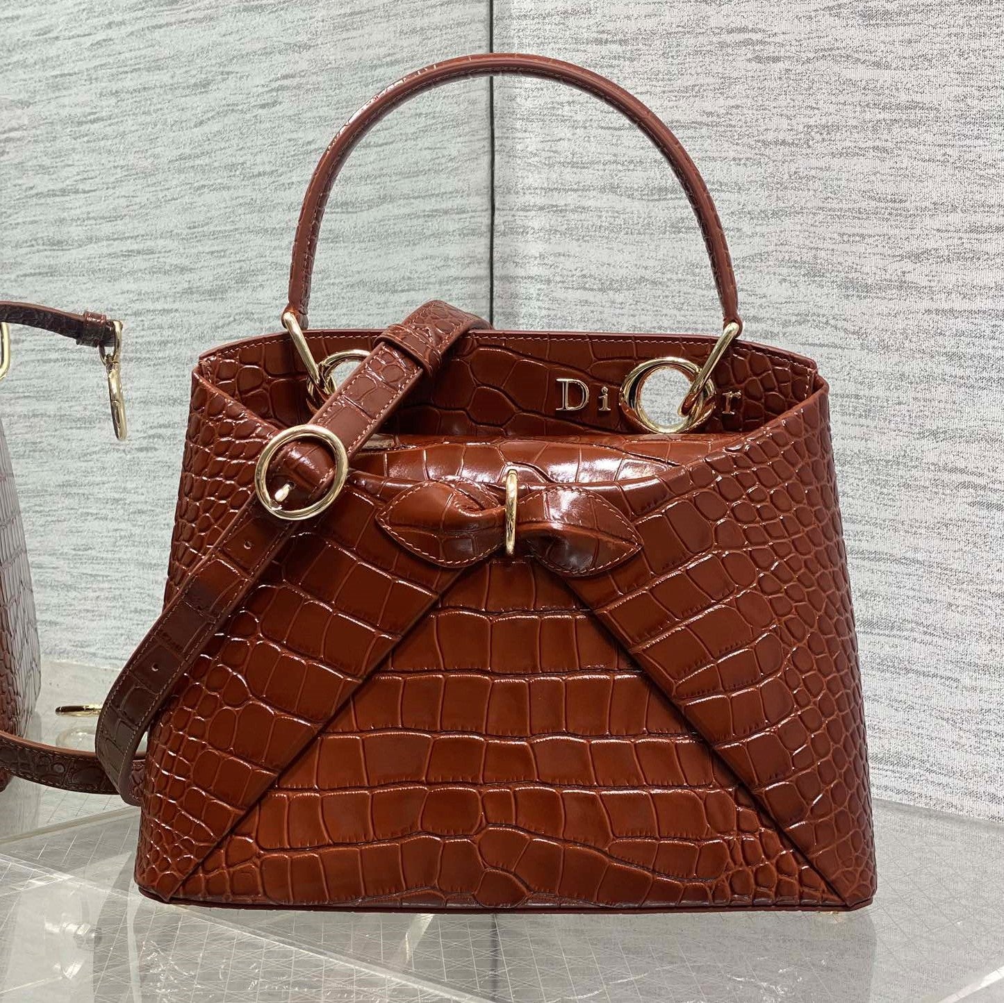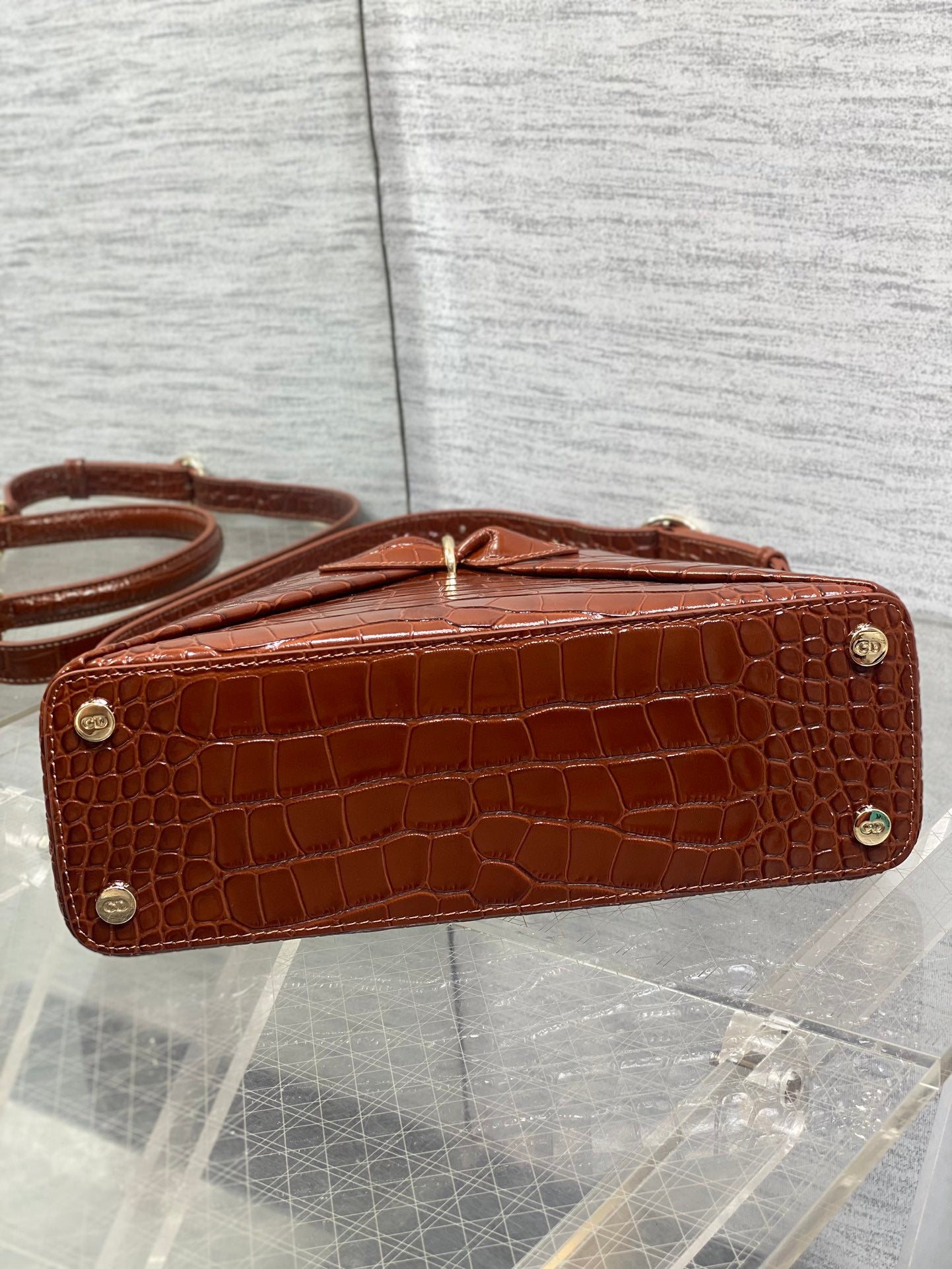 CD 26SS Bow-Adorned Bag Brown Glossy Crocodile Pattern Embossed Calfskin 272523