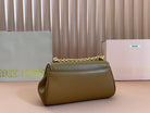 CHAIN SHOULDER BAG 24 IN PEANUT BROWN PATENT SMOOTH CALFSKIN