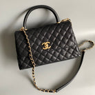 coco handle large flap bag 28cm black quilted caviar gold hardware
