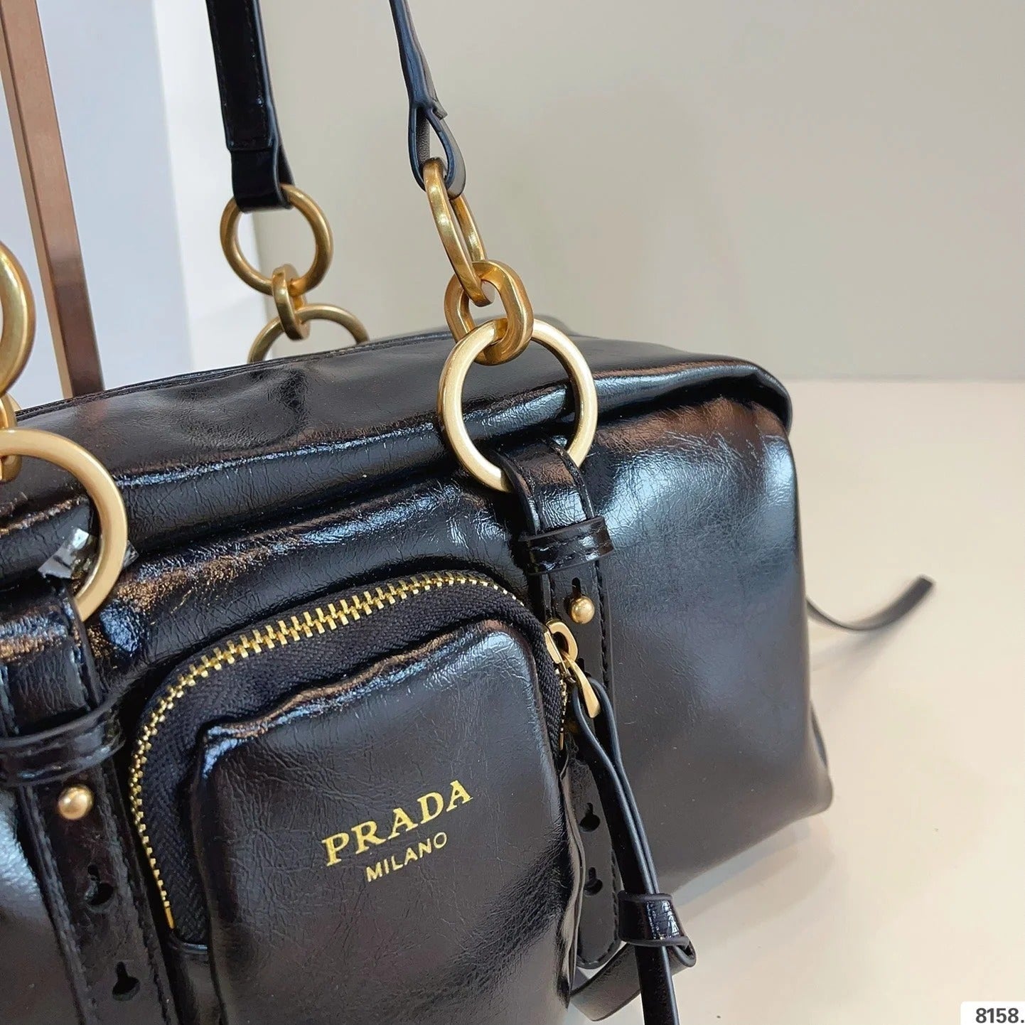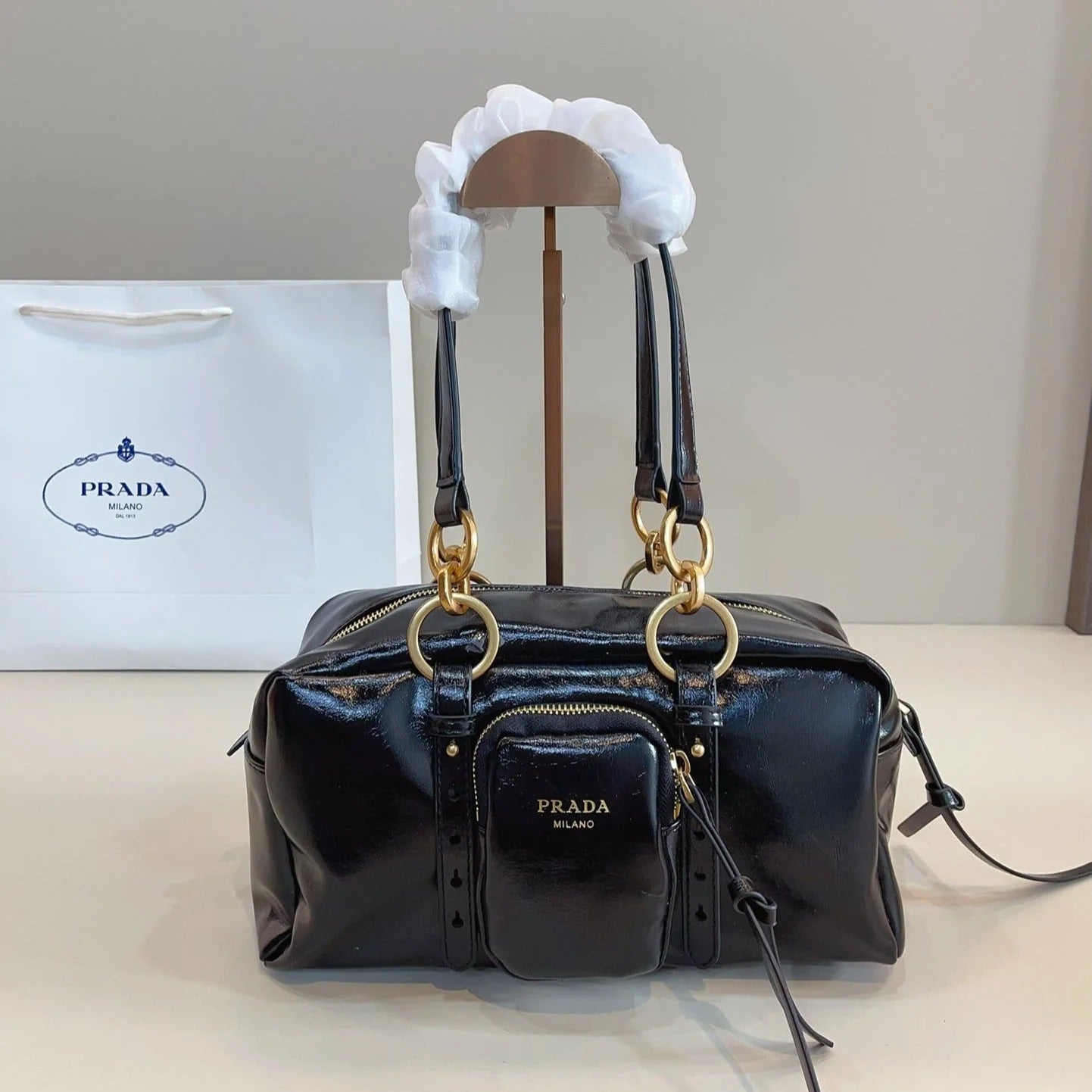 DANGLE TOP HANDLE BAG 30 IN BLACK PATENT CALFSKIN