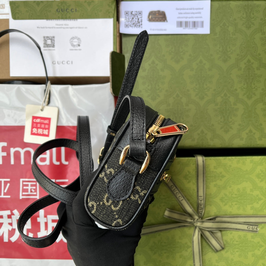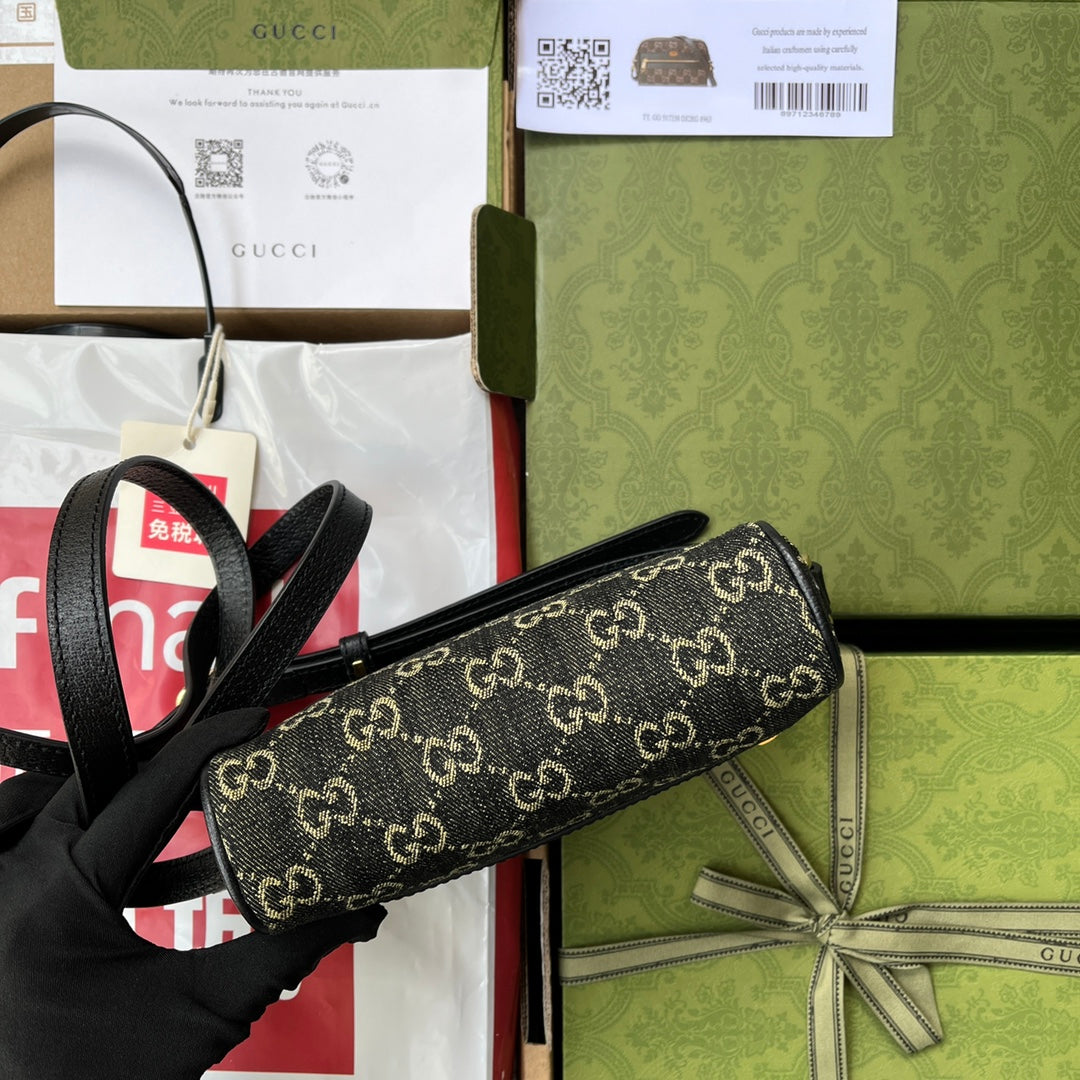DENIM SHOULDER BAG 17 BLACK WITH LEATHER TRIM