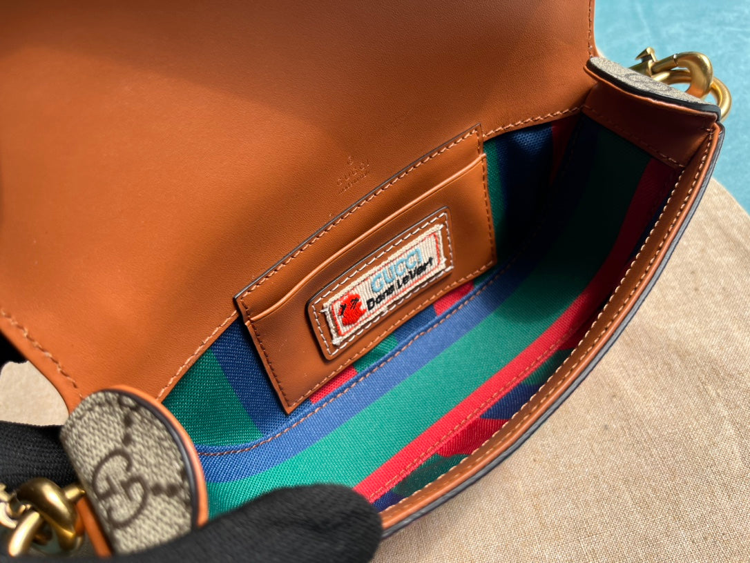 GG MINI 13 HANDBAG IN LIGHT PINK AND BEIGE CANVAS