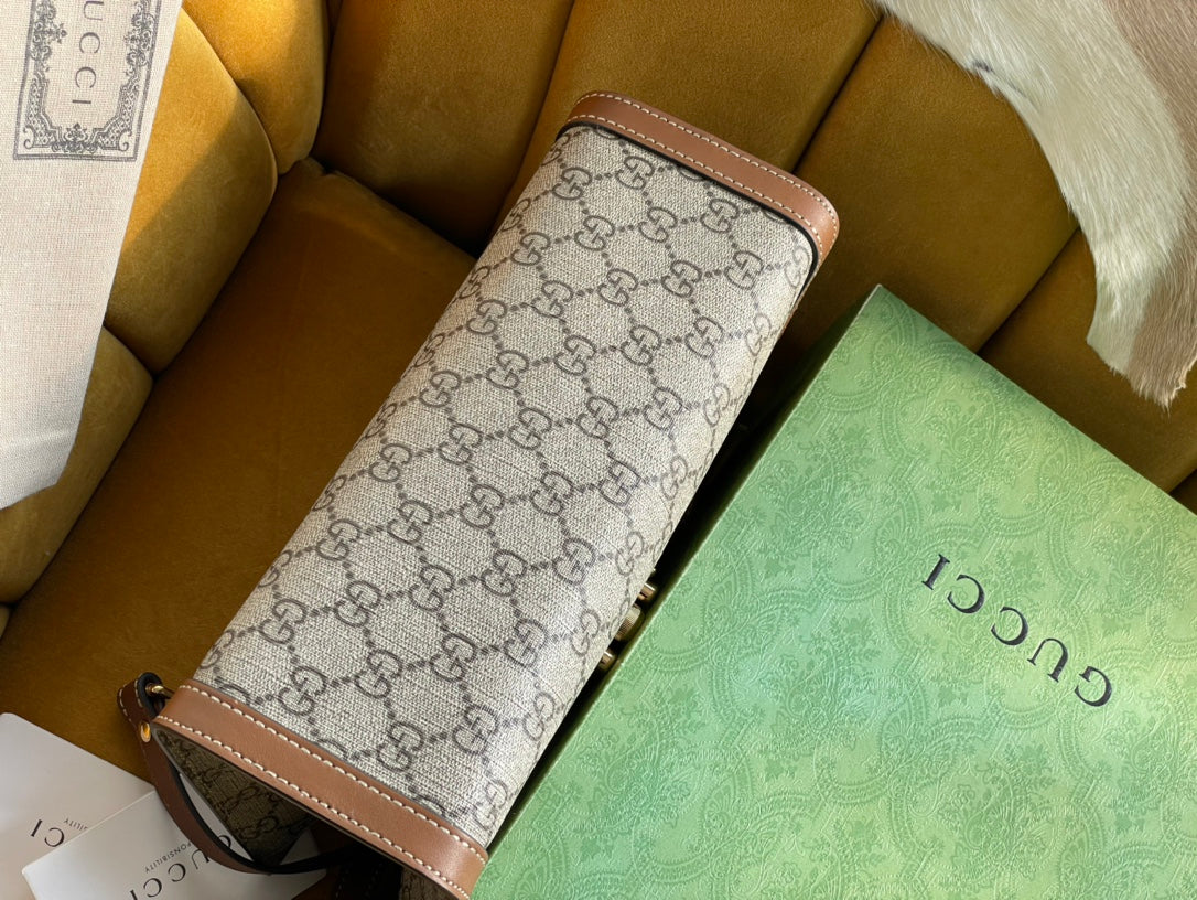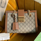 GG PADLOCK MEDIUM 26 SHOULDER BAG BEIGE CANVAS AND BROWN CALFSKIN