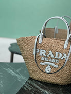 LARGE TOTE BAG 56 IN BEIGE RAFFIA GRASS AND WHITE CALFSKIN TRIM
