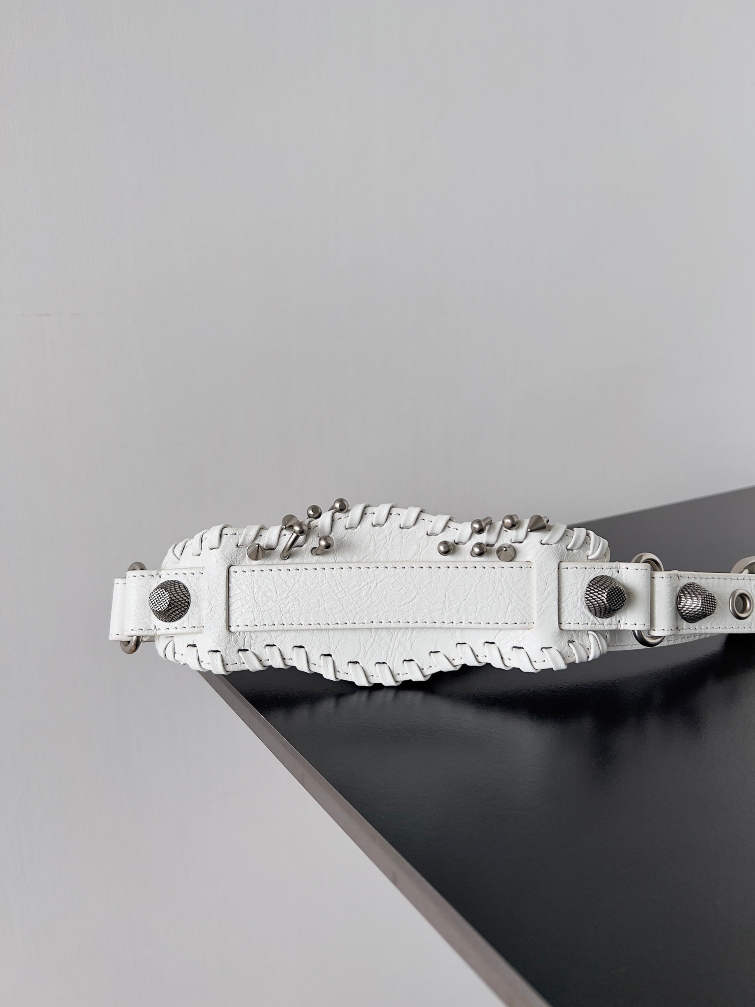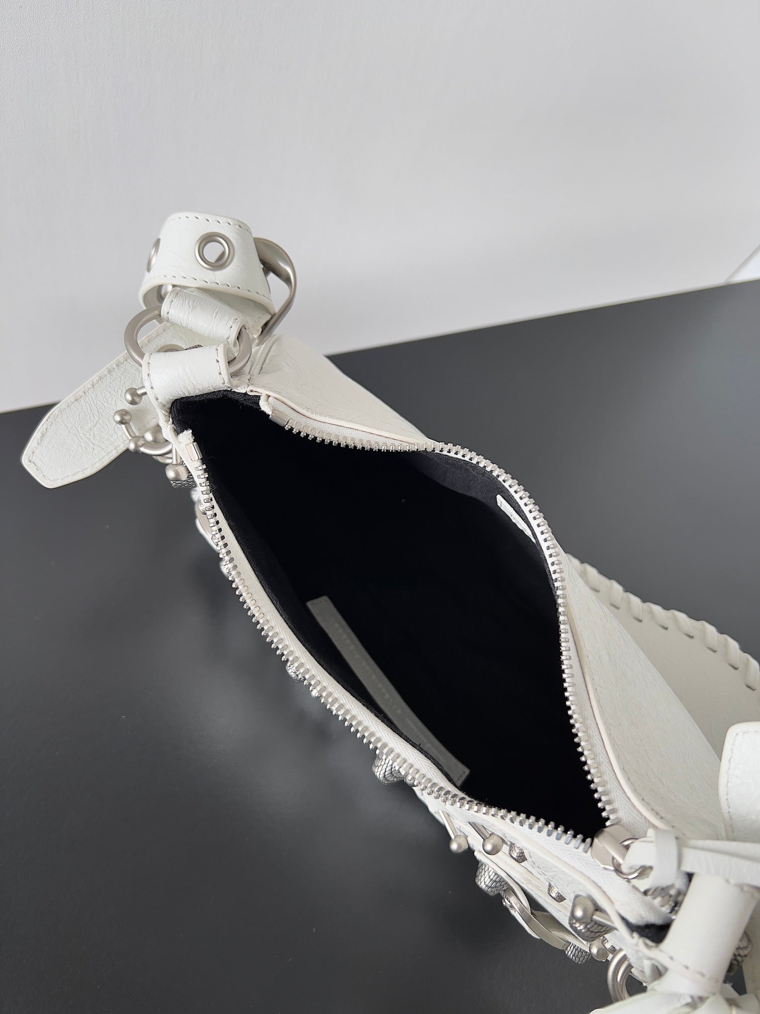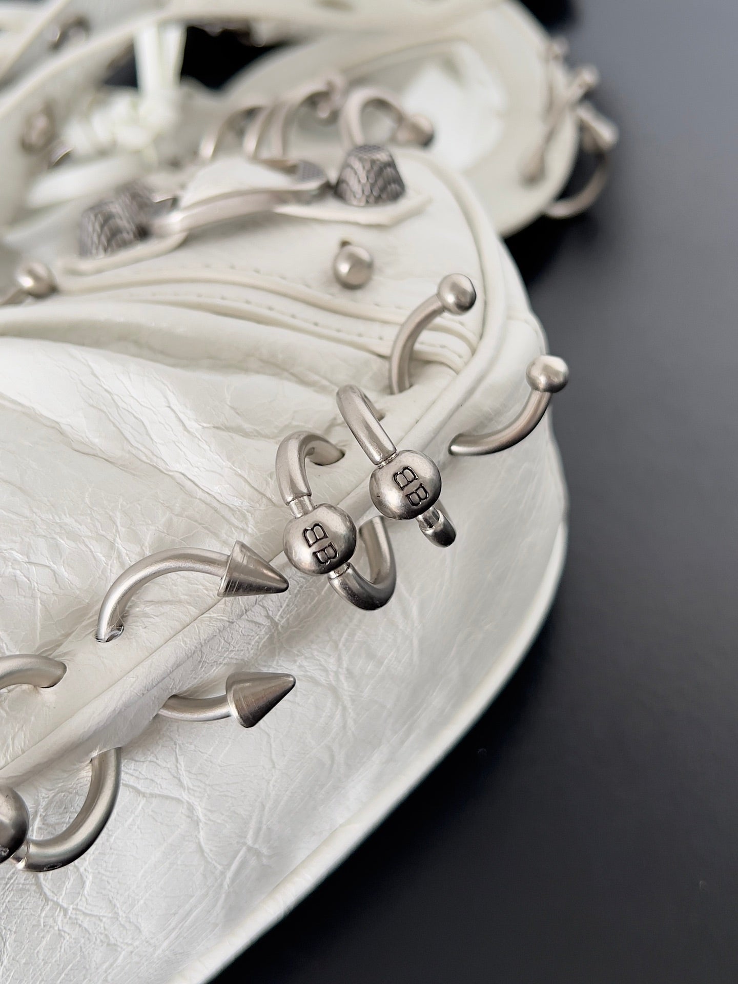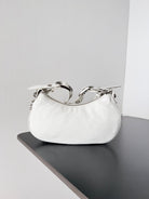 LE CAGOLE XS SHOULDER BAG 26 IN WHITE ARENA LAMBSKIN WITH PIERCING SILVER HARDWARE