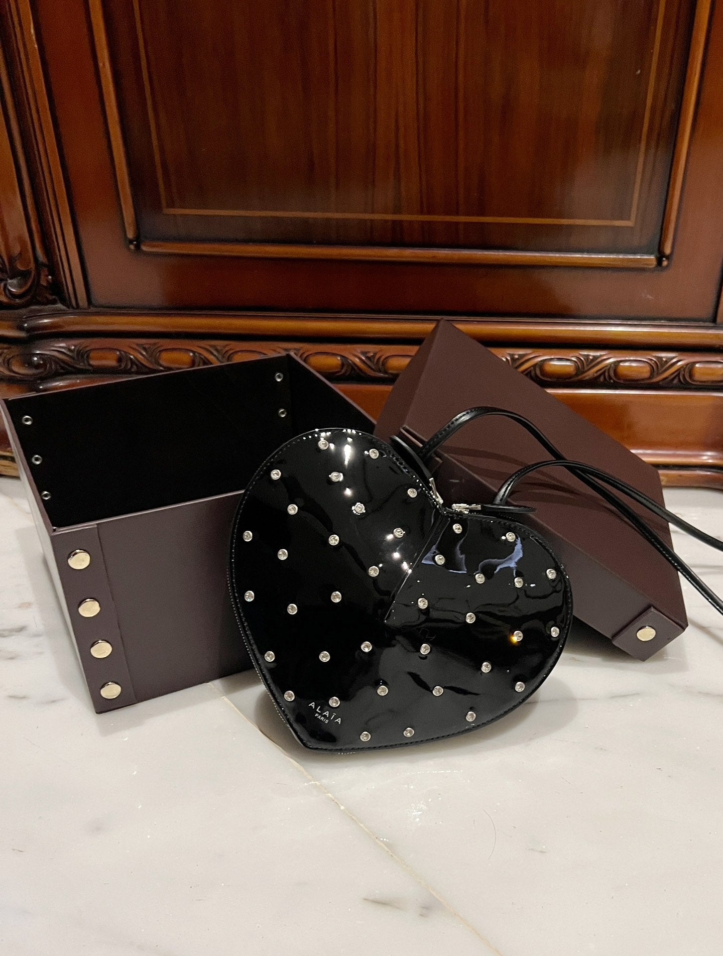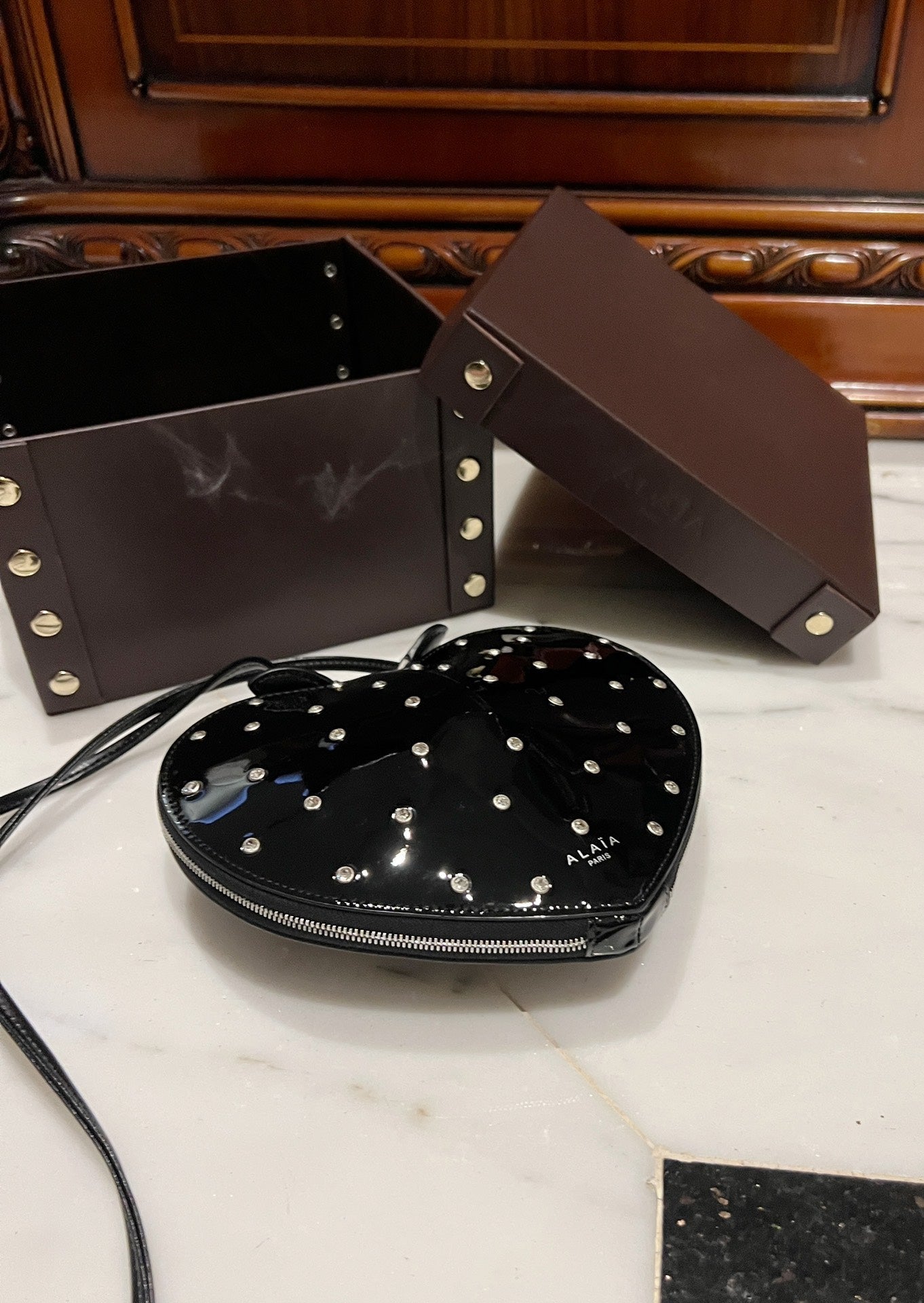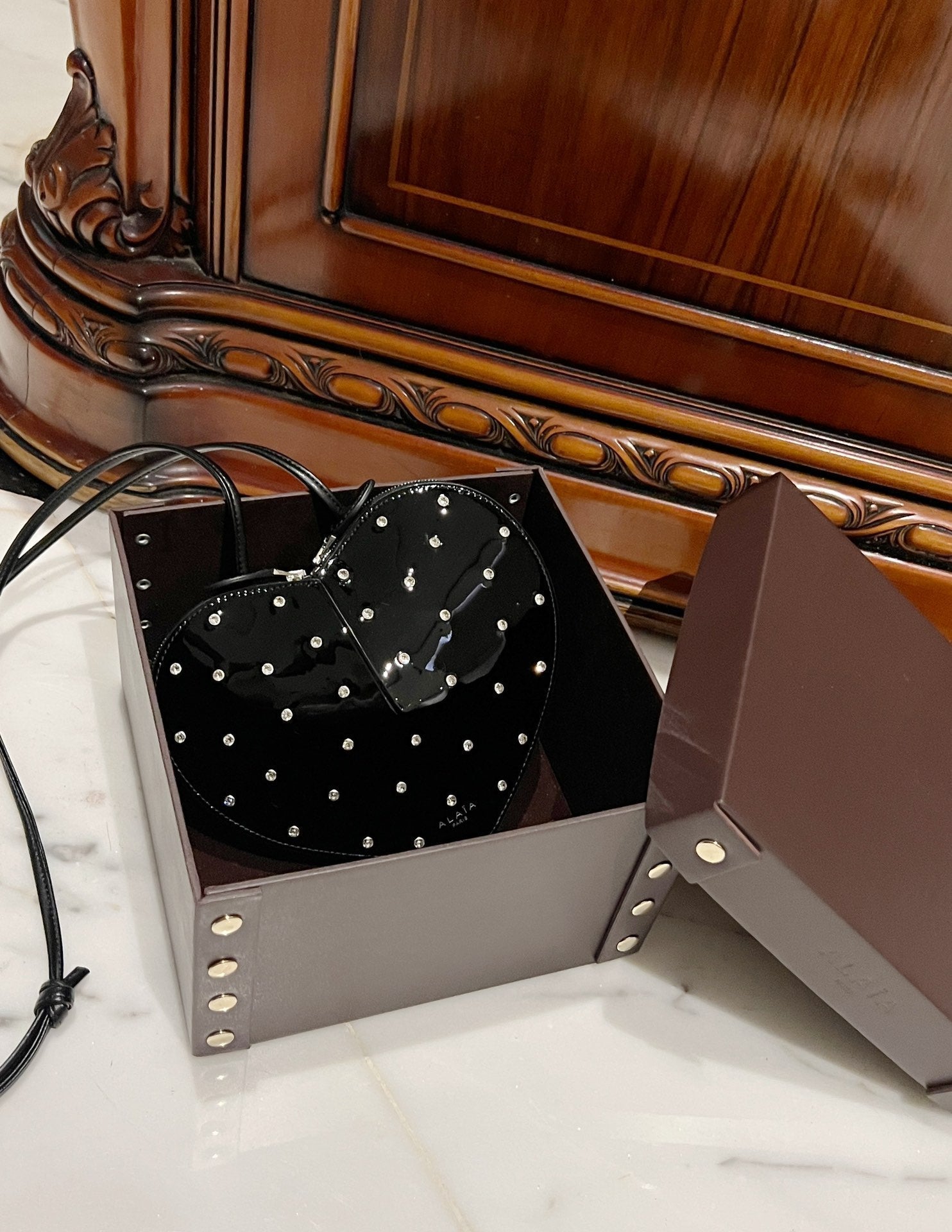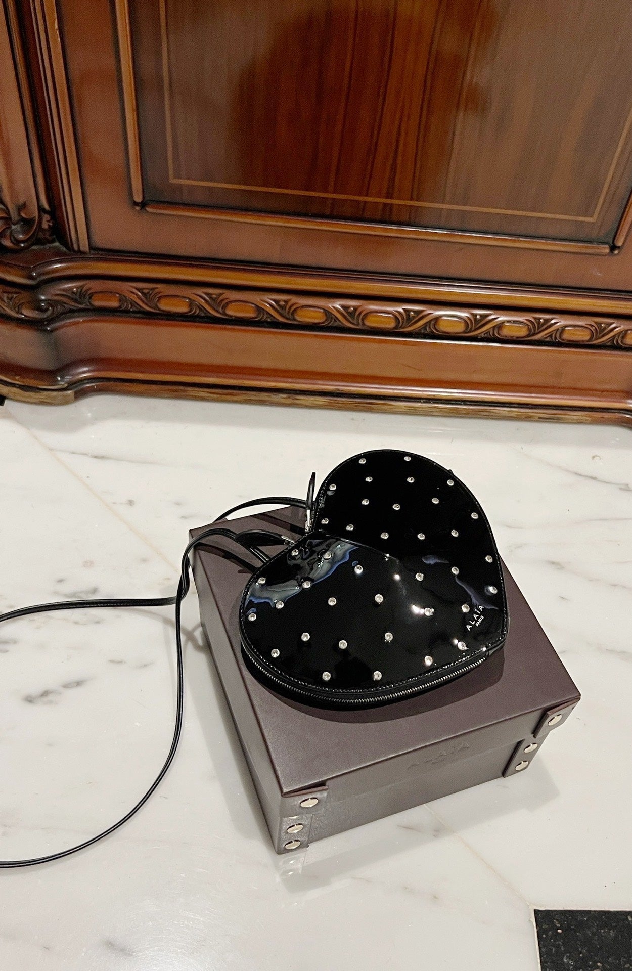 LE COEUR BAG 21 IN BLACK PATENT CALFSKIN ATTACHED STRASS