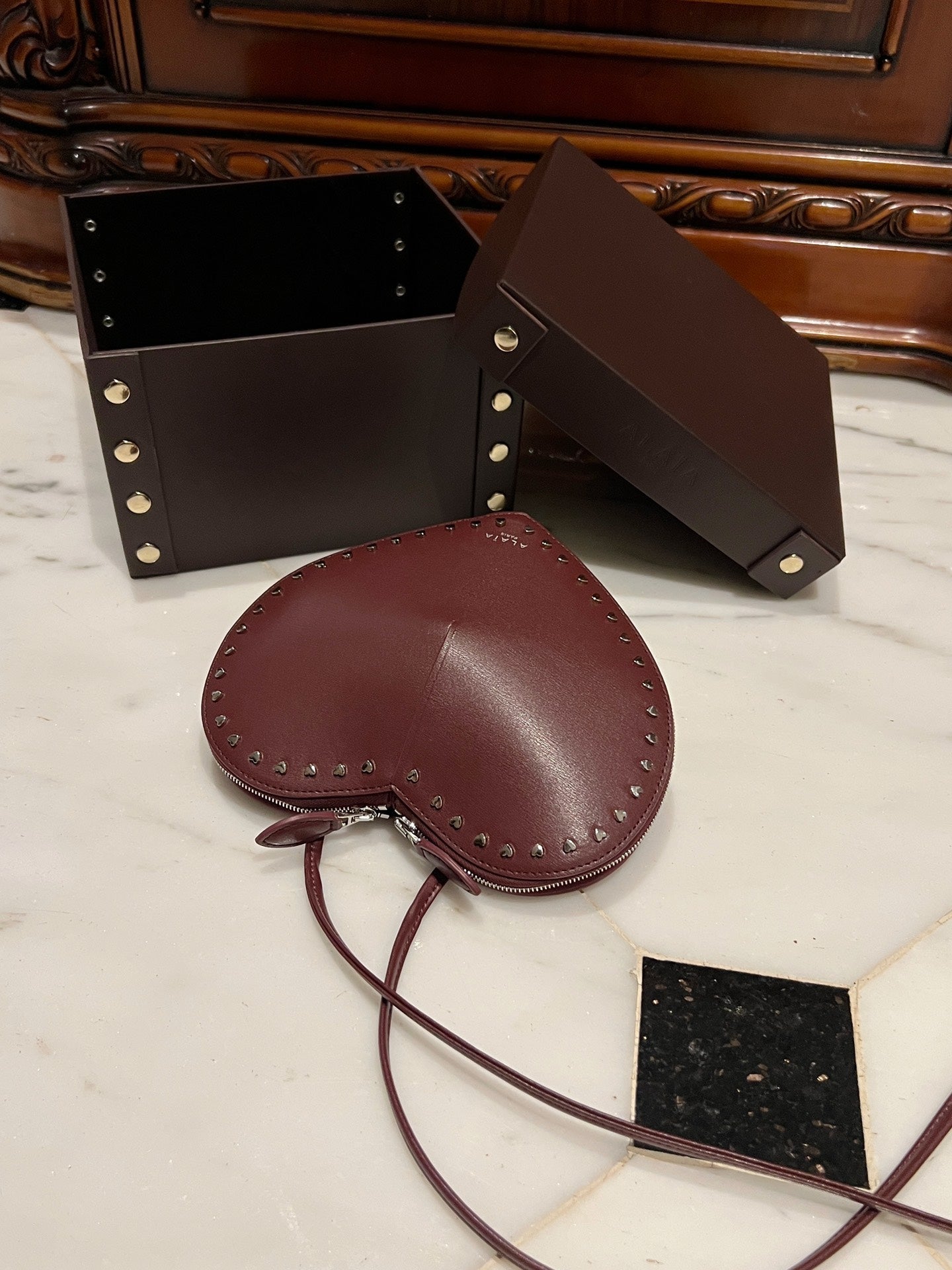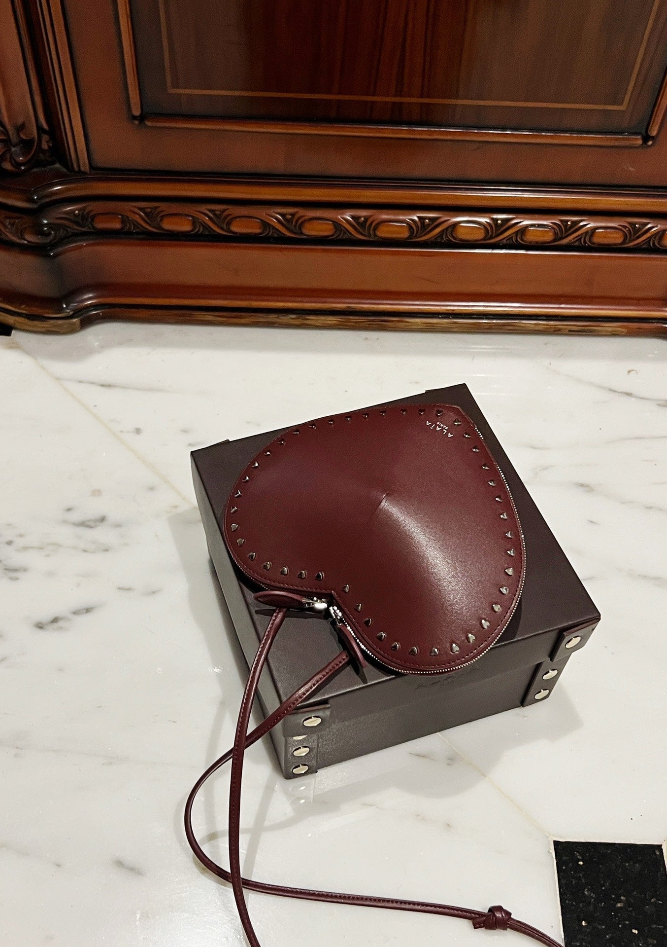 LE COEUR BAG 21 IN BURGUNDY RED CALFSKIN WITH STUDDED HEART
