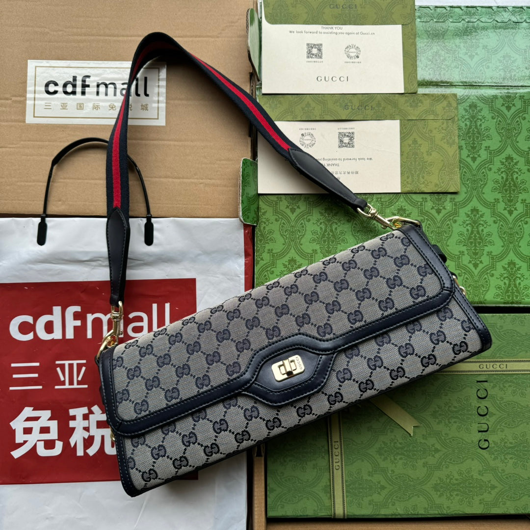 LUCE MEDIUM SHOULDER BAG 36 IN LIGHT GRAY CANVAS AND BLACK CALFSKIN TRIM GOLD HARDWARE