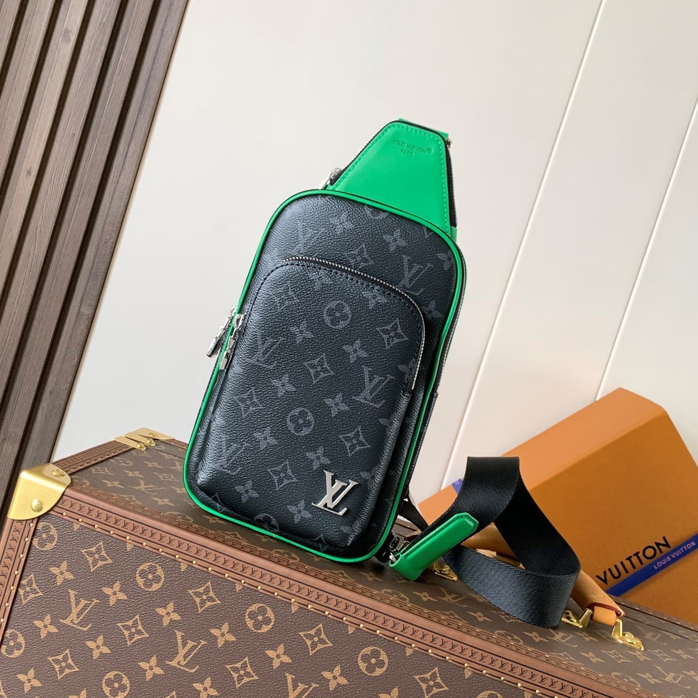 LV Mini Avenue Slingbag PM 12cm Black Bamboo Green Monogram Eclipse Canvas
