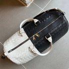 MEDIUM INTRECCIATO 50 CABIN DUFFLE IN BLACK WHITE CALFSKIN
