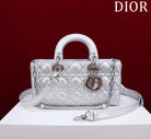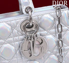 medium lady d-joy 26 silver metalic lambskin