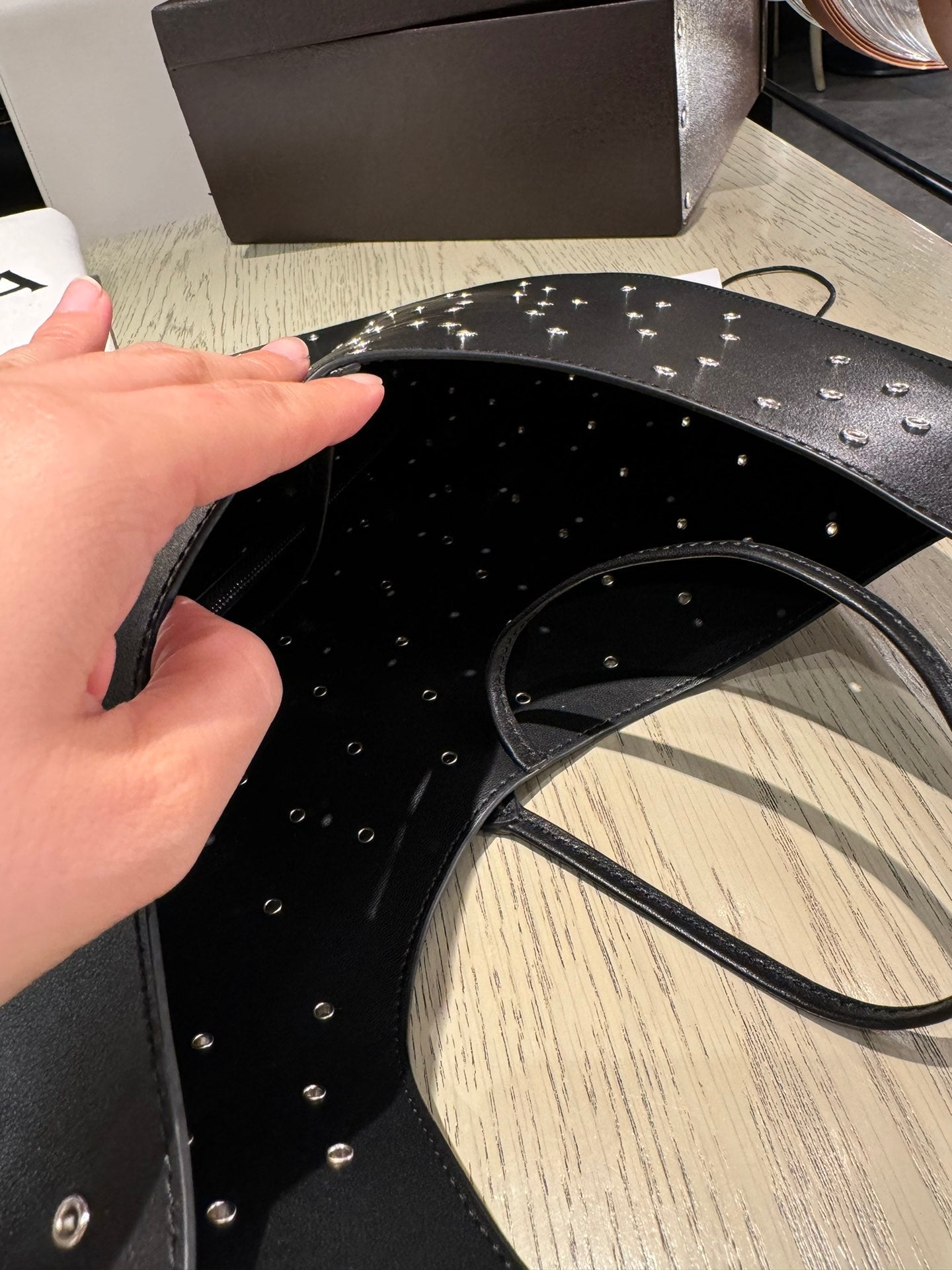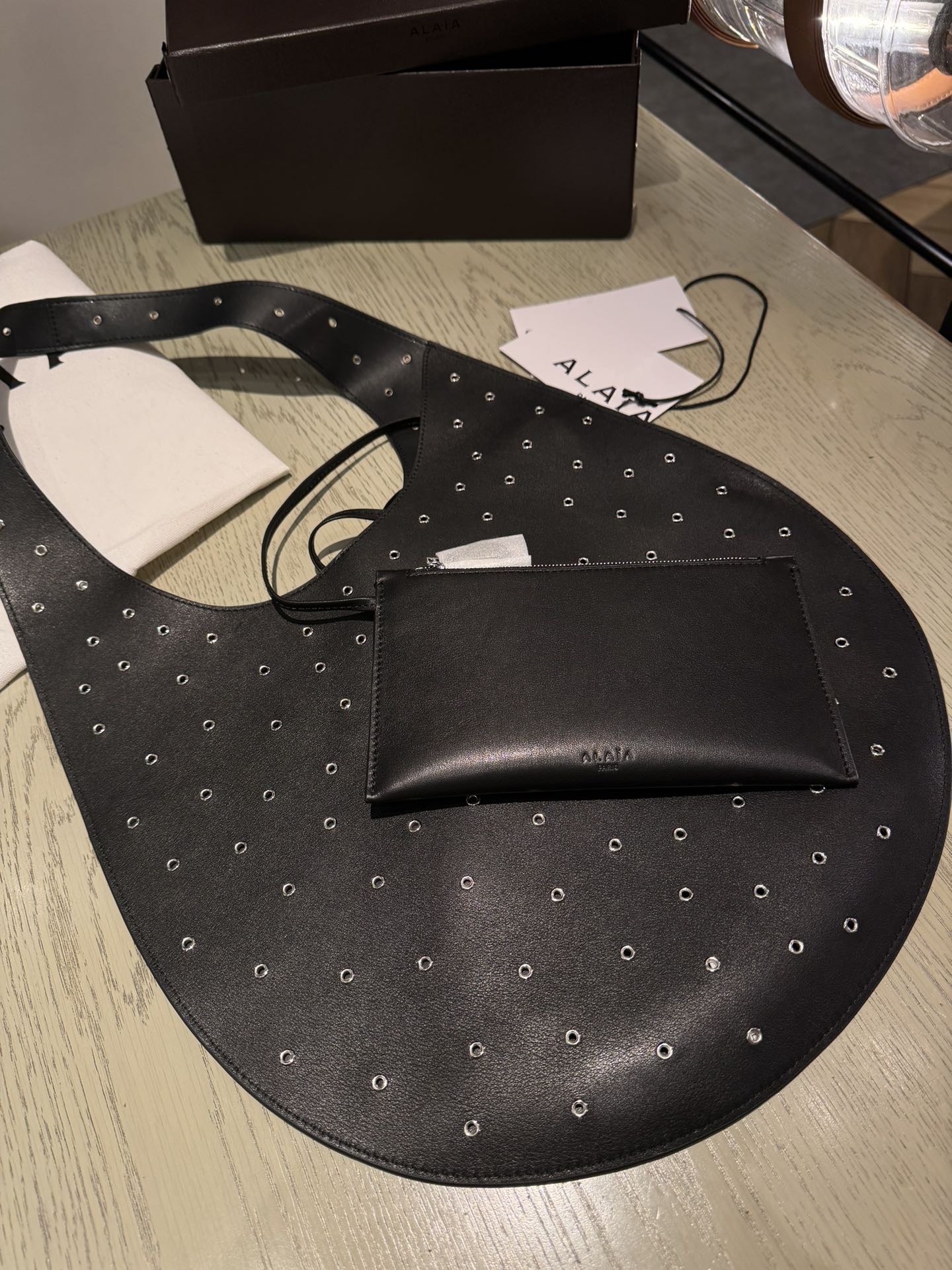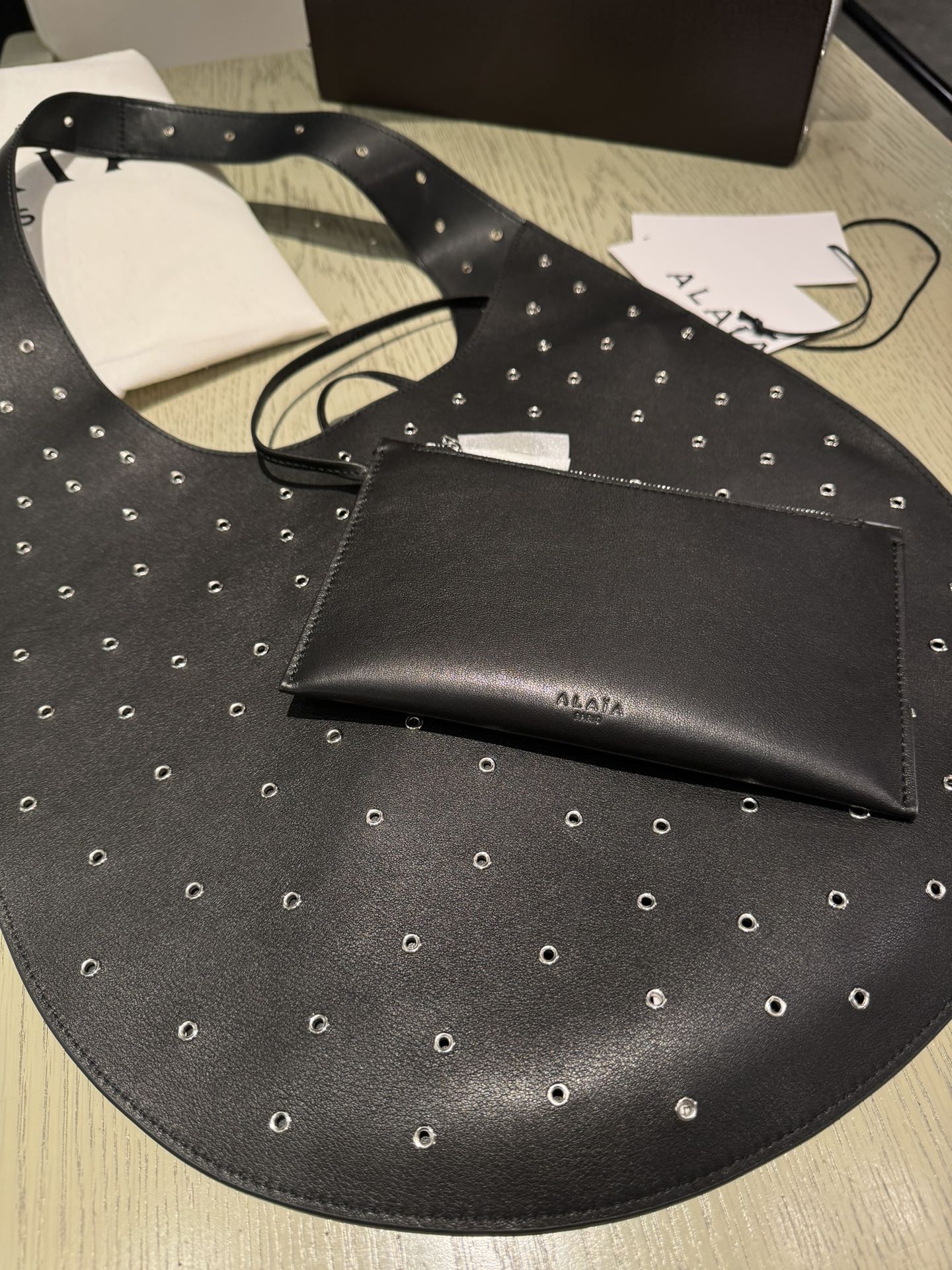 ONE PIECE MEDIUM BAG 39 IN BLACK SHEEPSKIN EYELET DETAILING