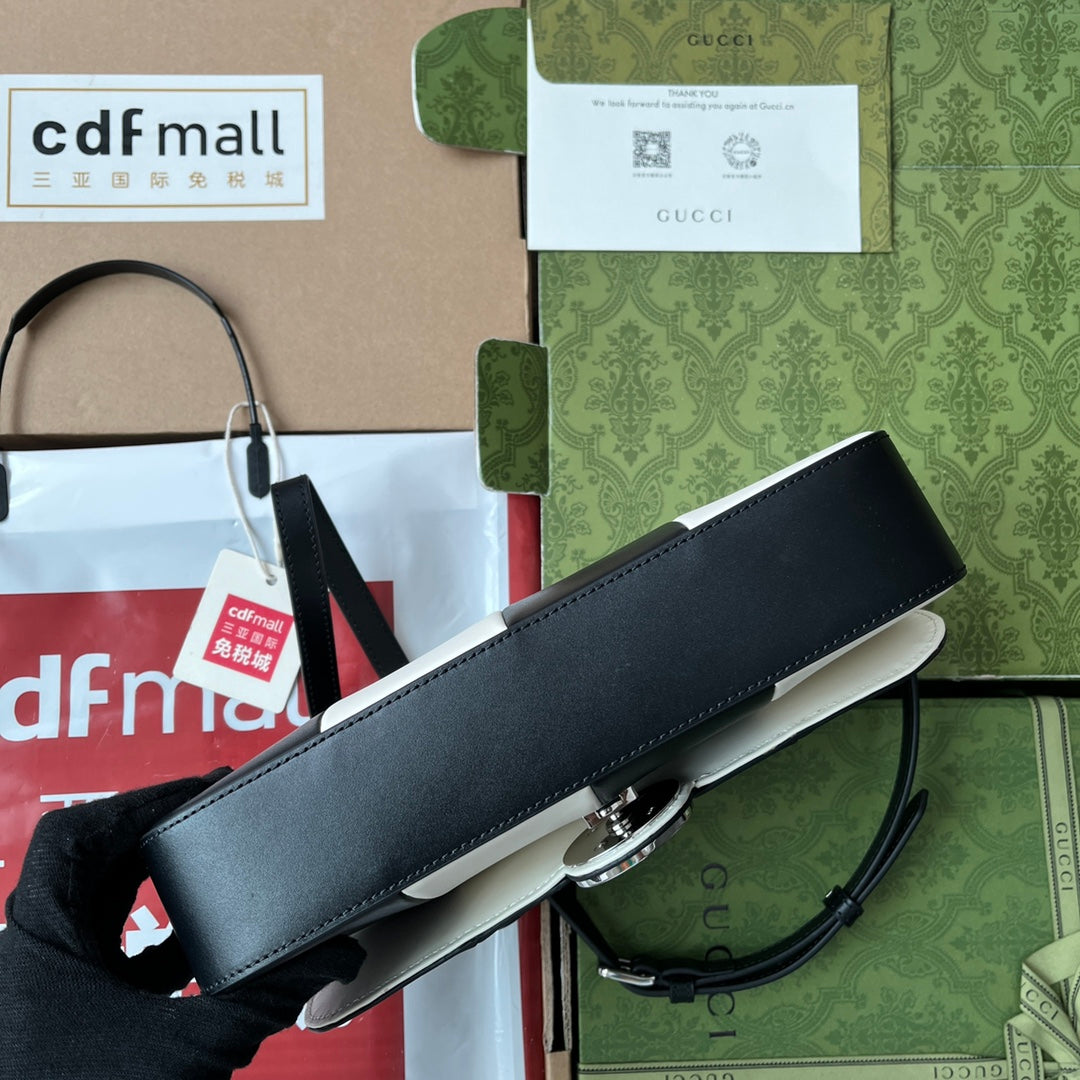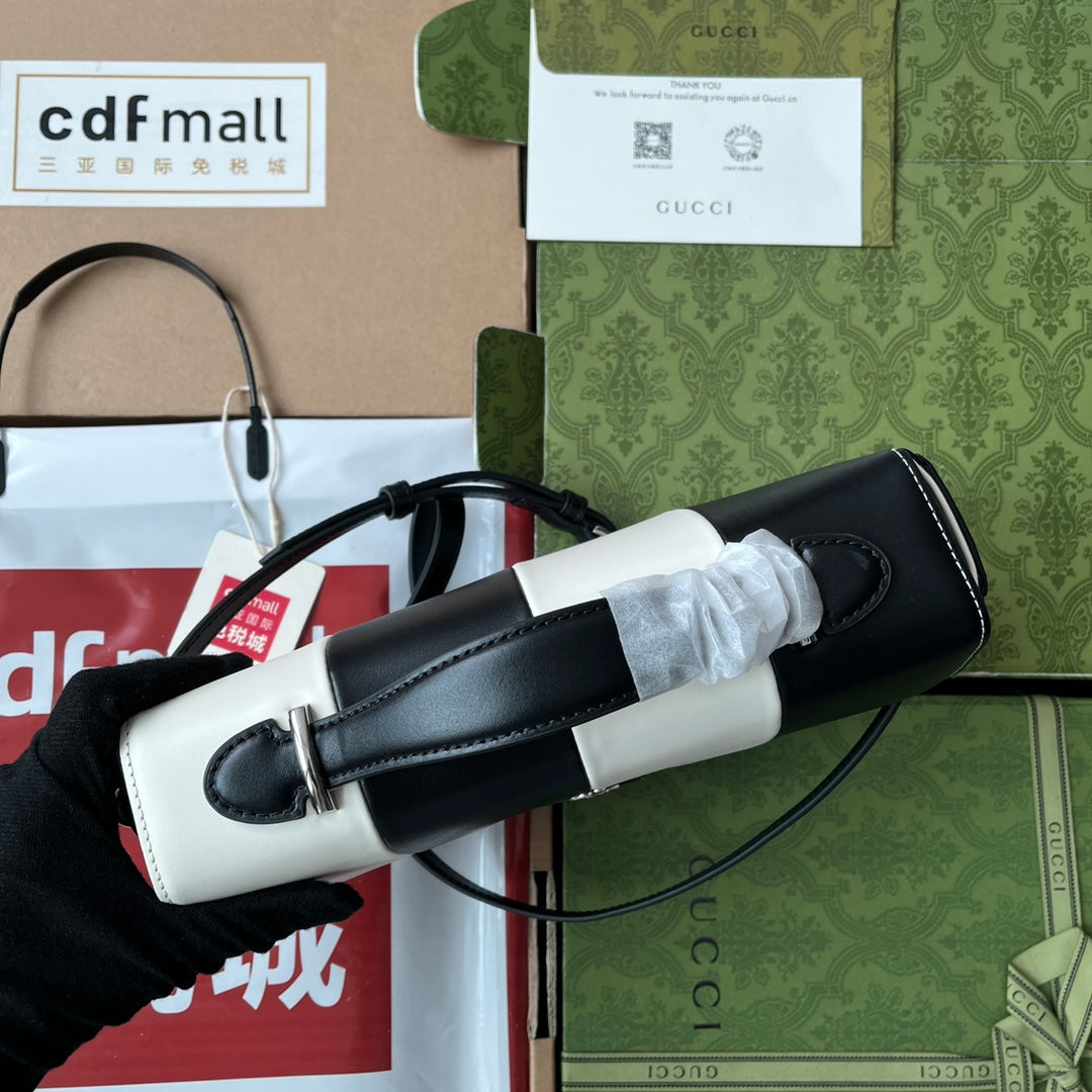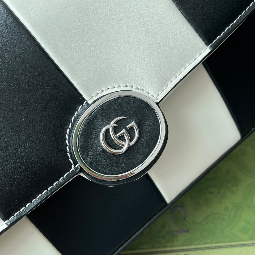 PETITE SMALL SHOULDER BAG 27 IN BLACK MIX WHITE CALFSKIN