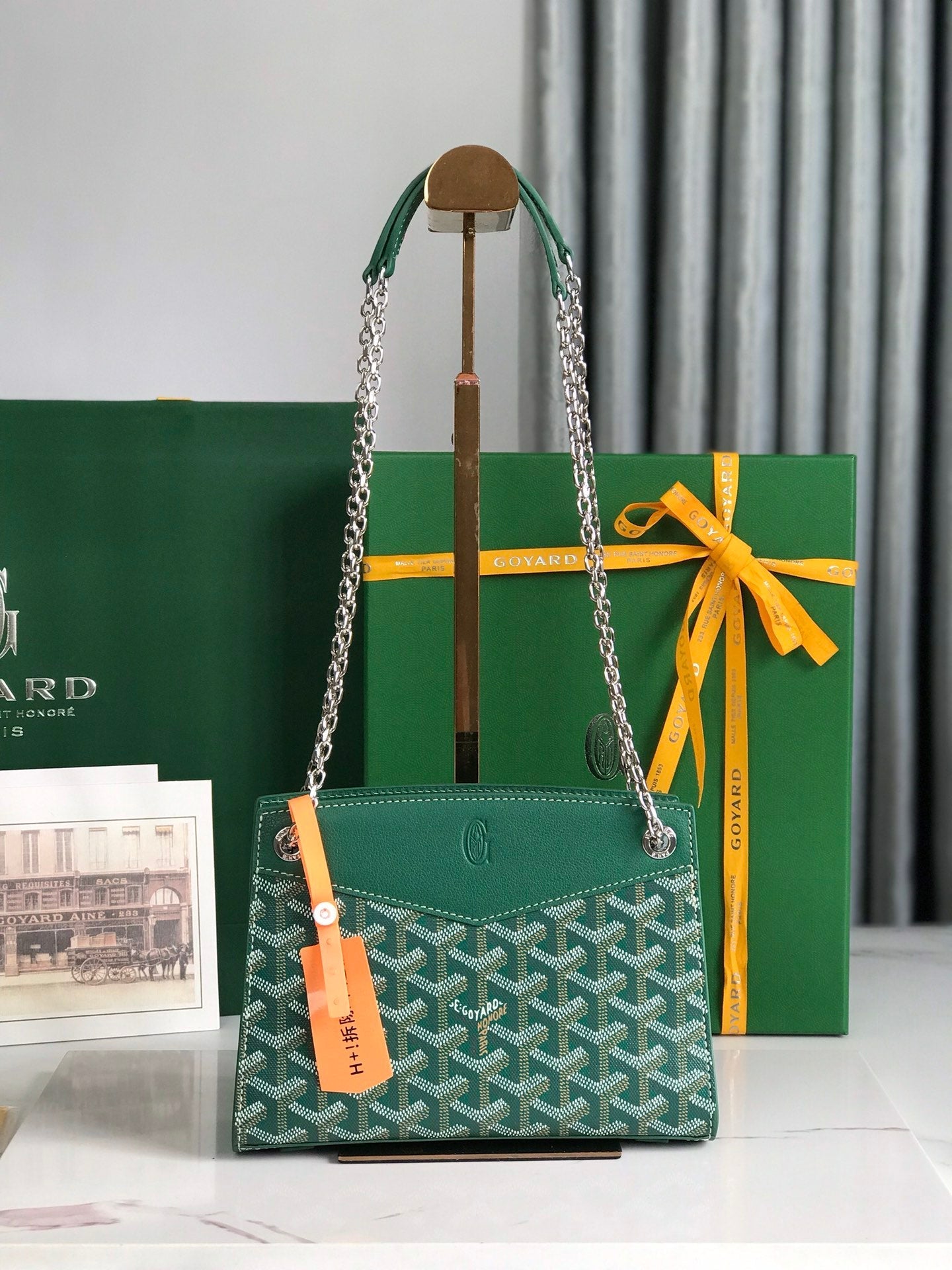 ROUETTE STRUCTURÉ MINI BAG 21 IN GREEN GOYARDINE CANVAS AND CALFSKIN