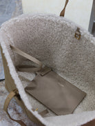 SHOPPING TOTE BAG 38 IN TAN BROWN SUEDE AND WHITE SHEARLING TRIM