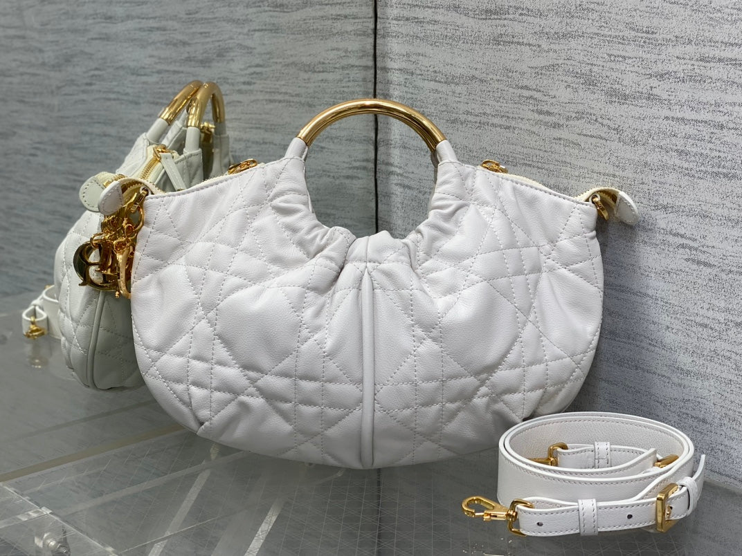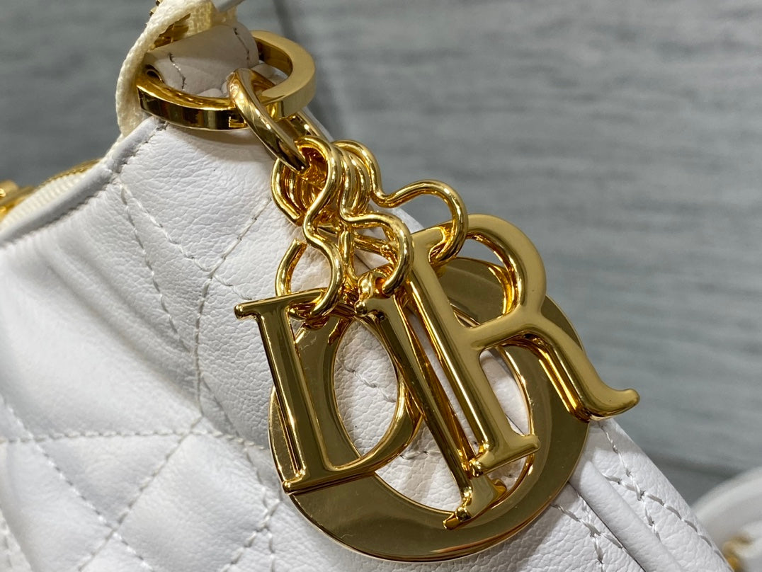 WALK IN PURSE 36 BAG WHITE LAMBSKIN WITH GOLD HARDWARE