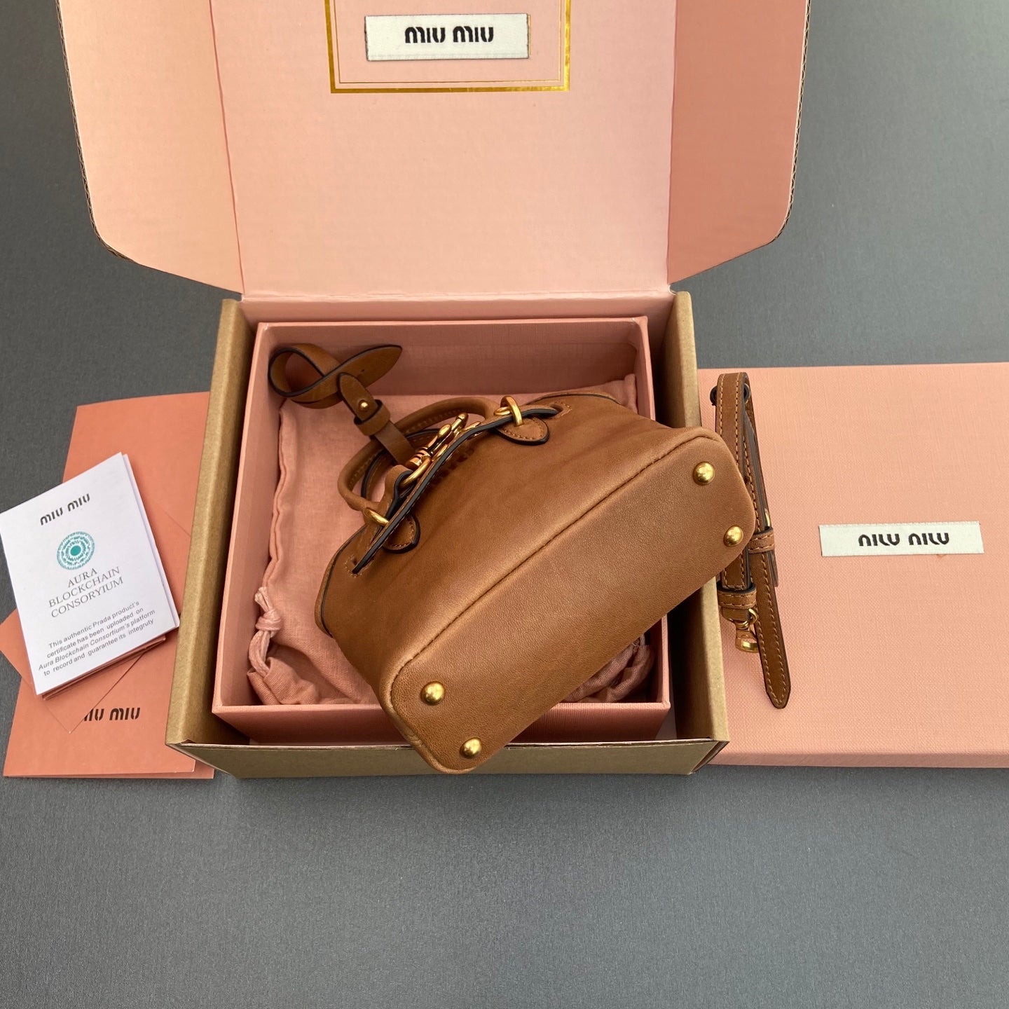 MICRO BAG 7 IN TAWNY BROWN SMOOTH LAMBSKIN GREEN STRAP
