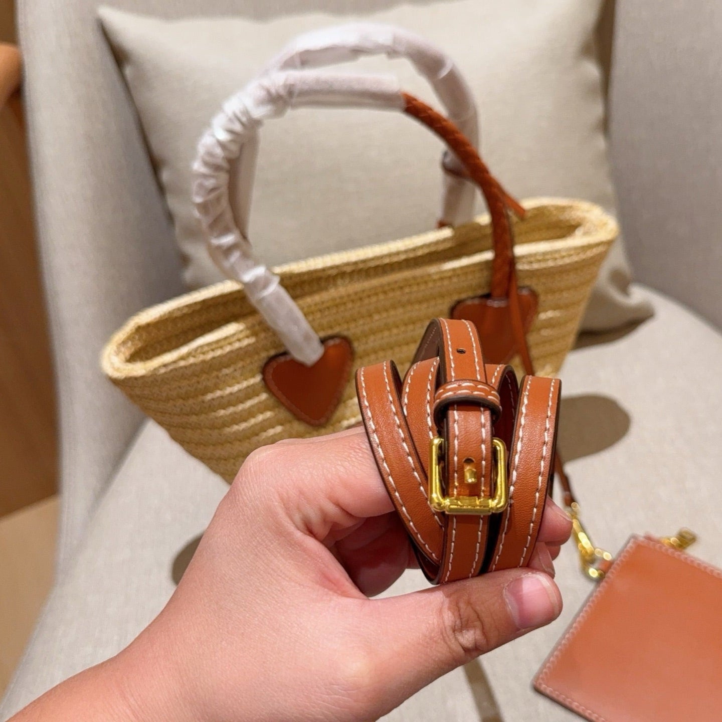 WANDER WICKER HOBO BAG 13 IN TAN BROWN HANDWOVEN WITH WHITE CALFSKIN LOGO