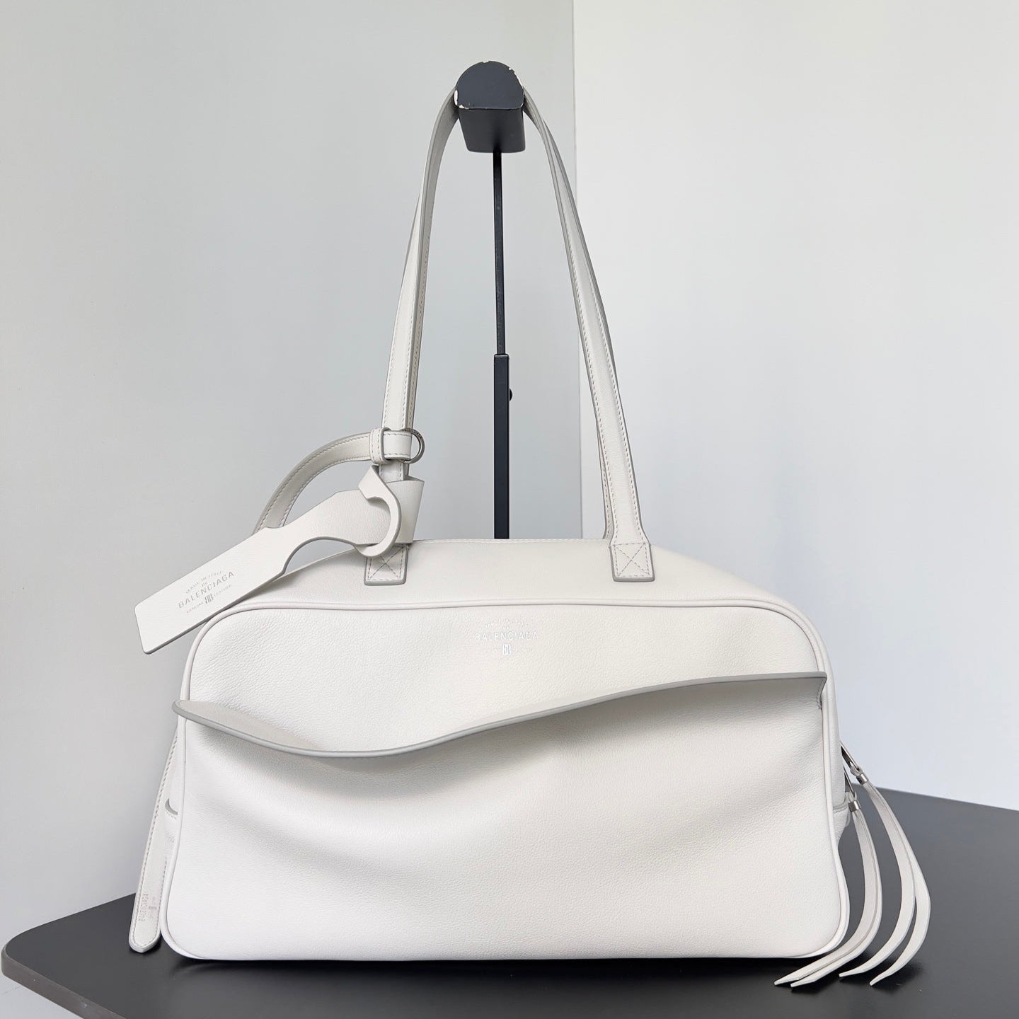 Balenciaga Carrie Bowling Ball Bag White Lambskin