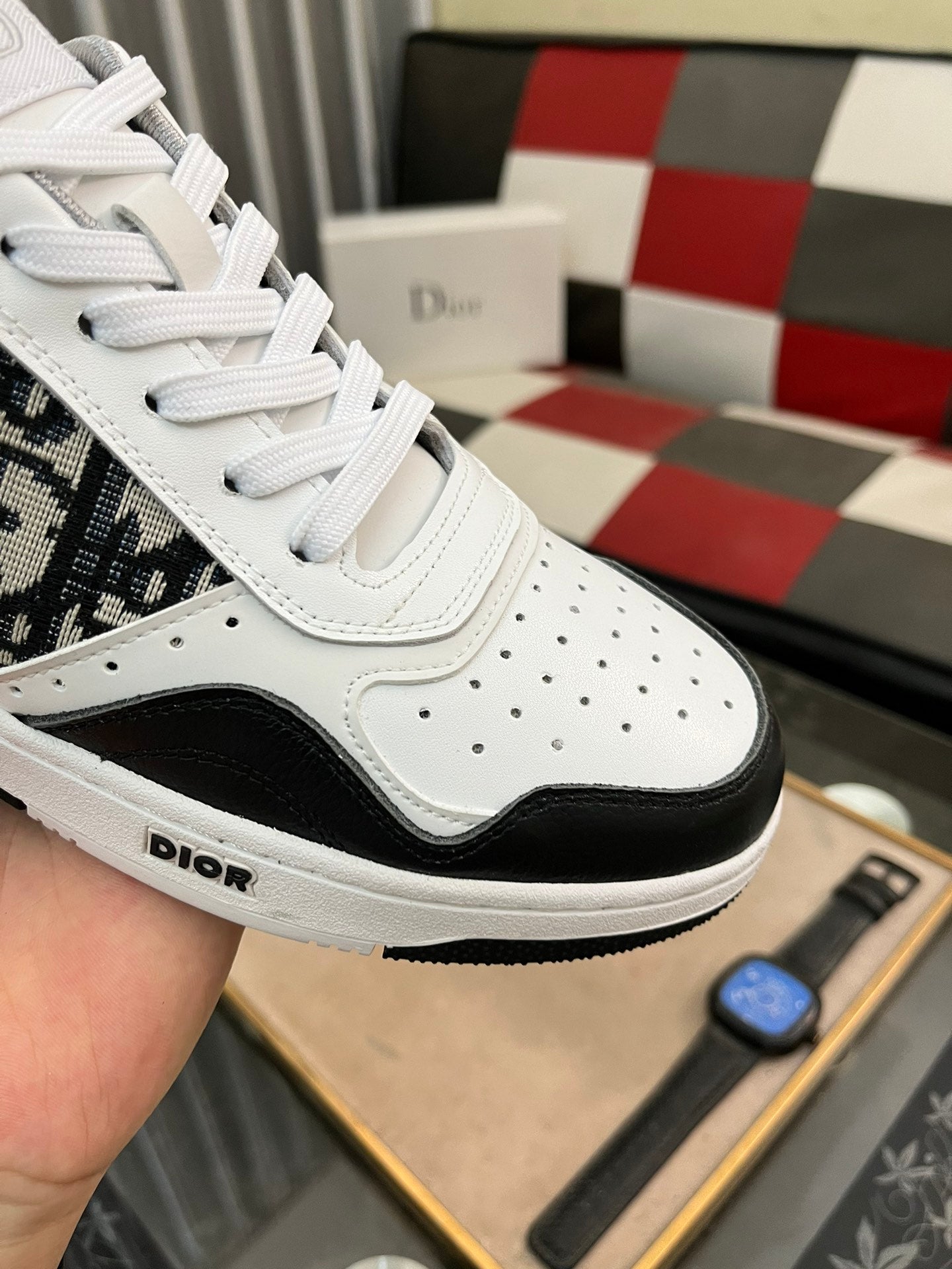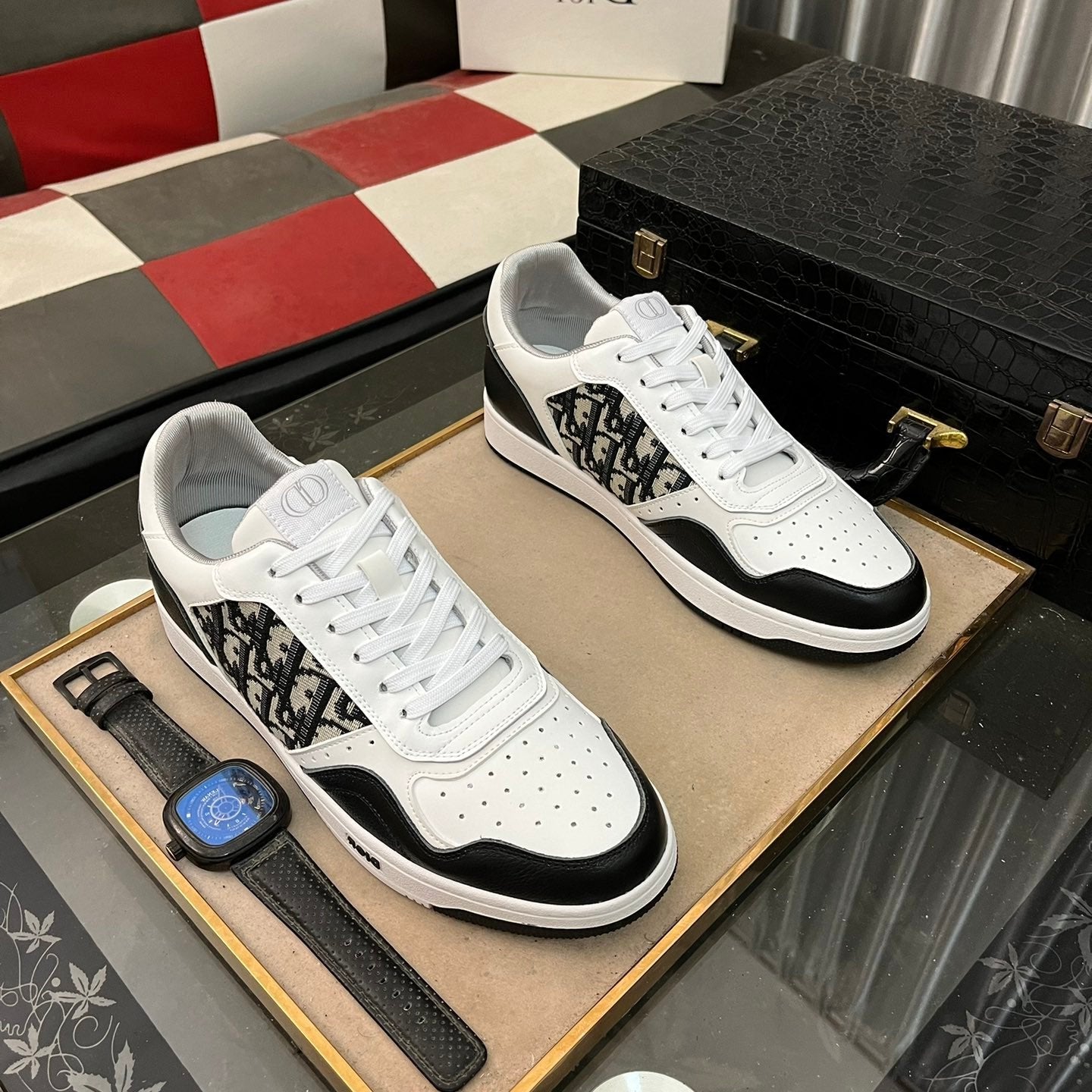 CD B27 LOW-TOP SNEAKER BLACK AND WHITE CALFSKIN